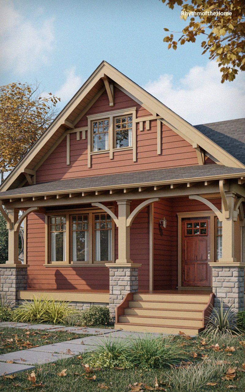 99. Red Siding Stone Porch Bungalow Home