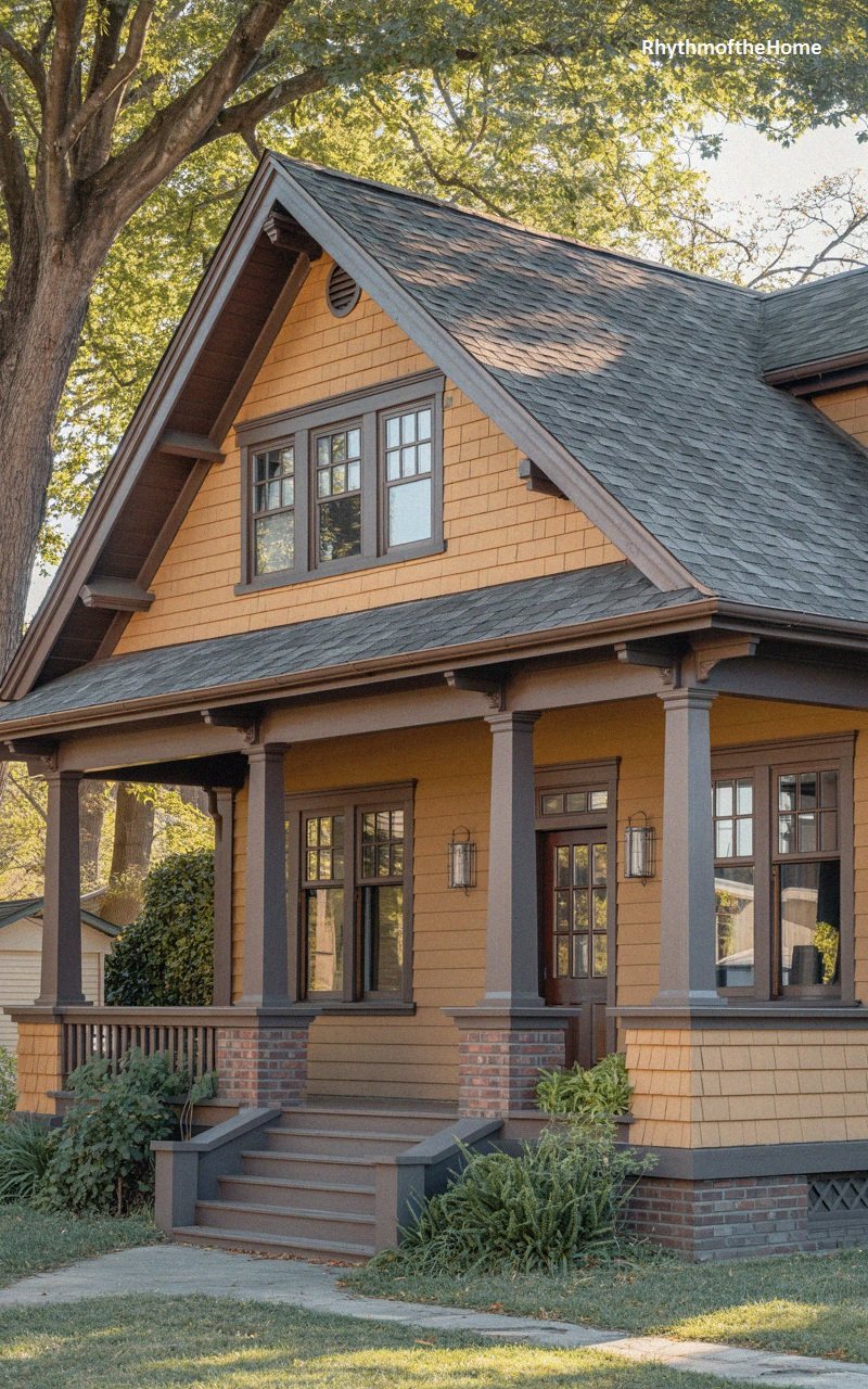 15. Yellow Siding Brick Accent Bungalow Home