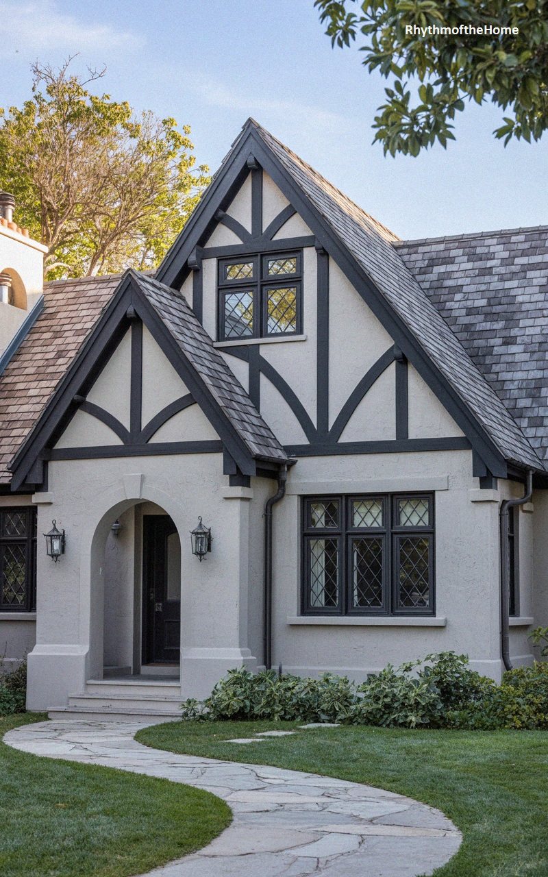 22. Black and White Tudor Bungalow Home