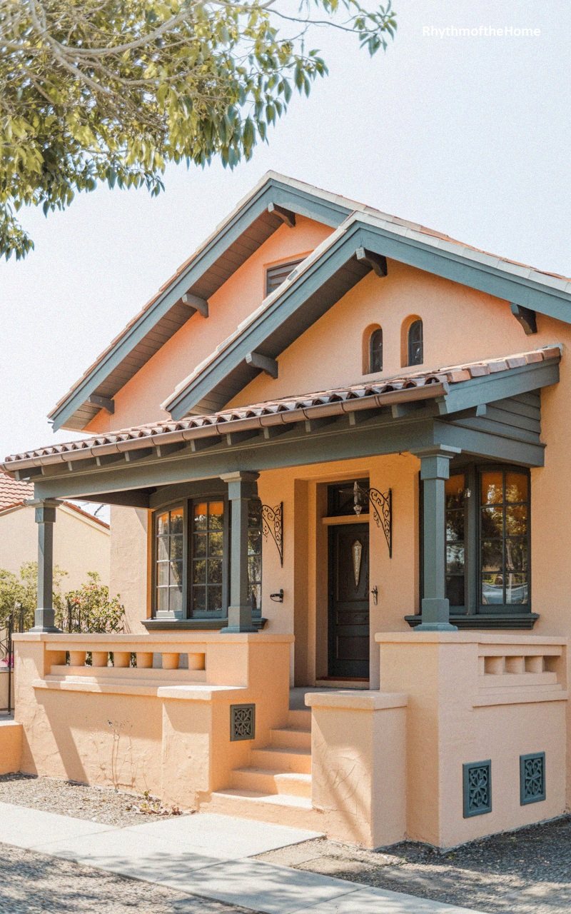 29. Peach Stucco Tudor Bungalow Home