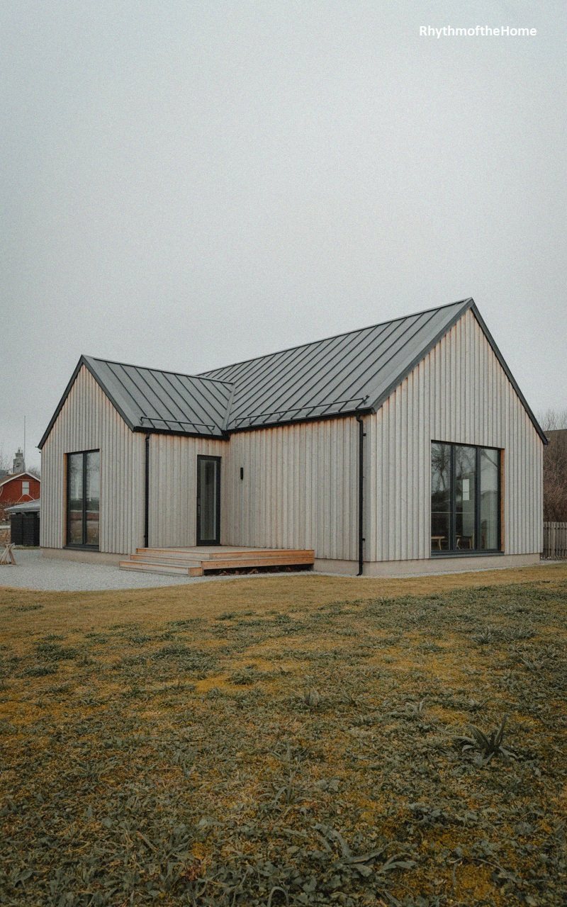 57. Minimalist Grey Wood Bungalow Home