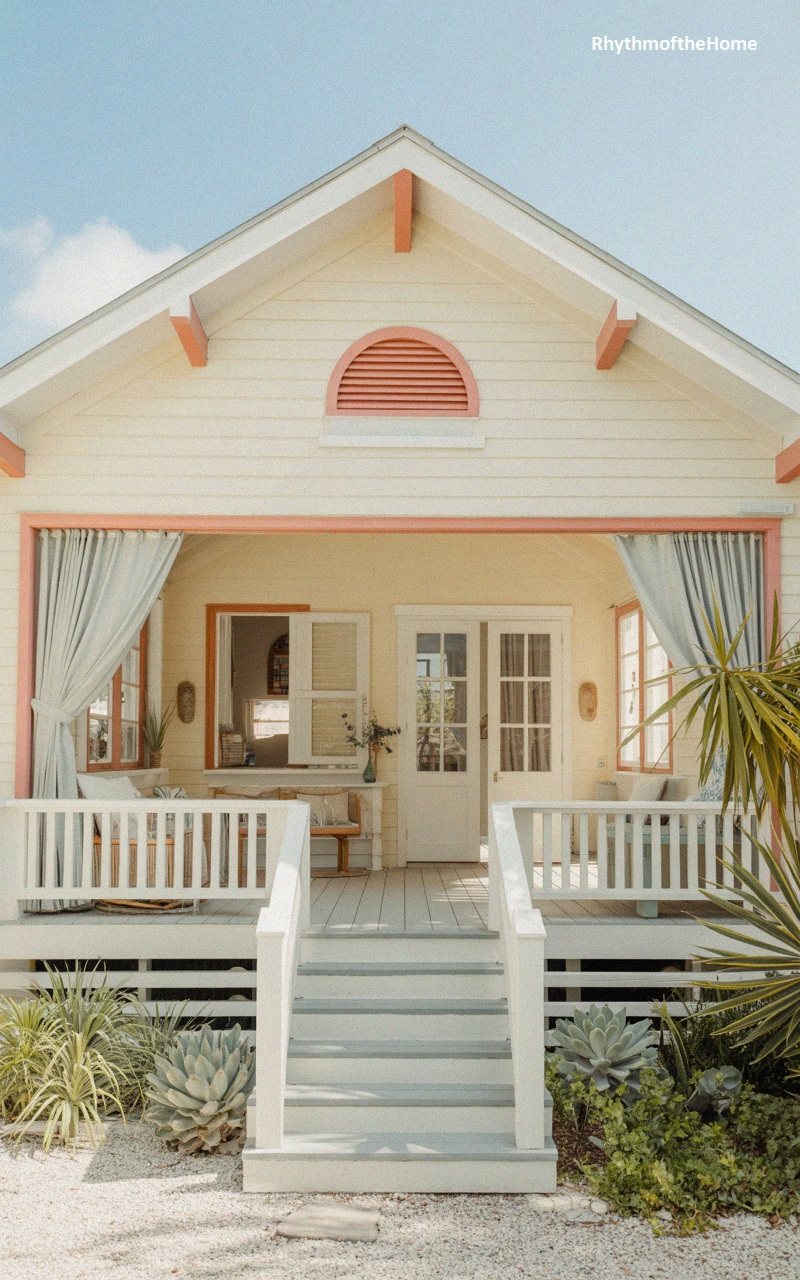 81. Peach and Blue Seaside Bungalow Home