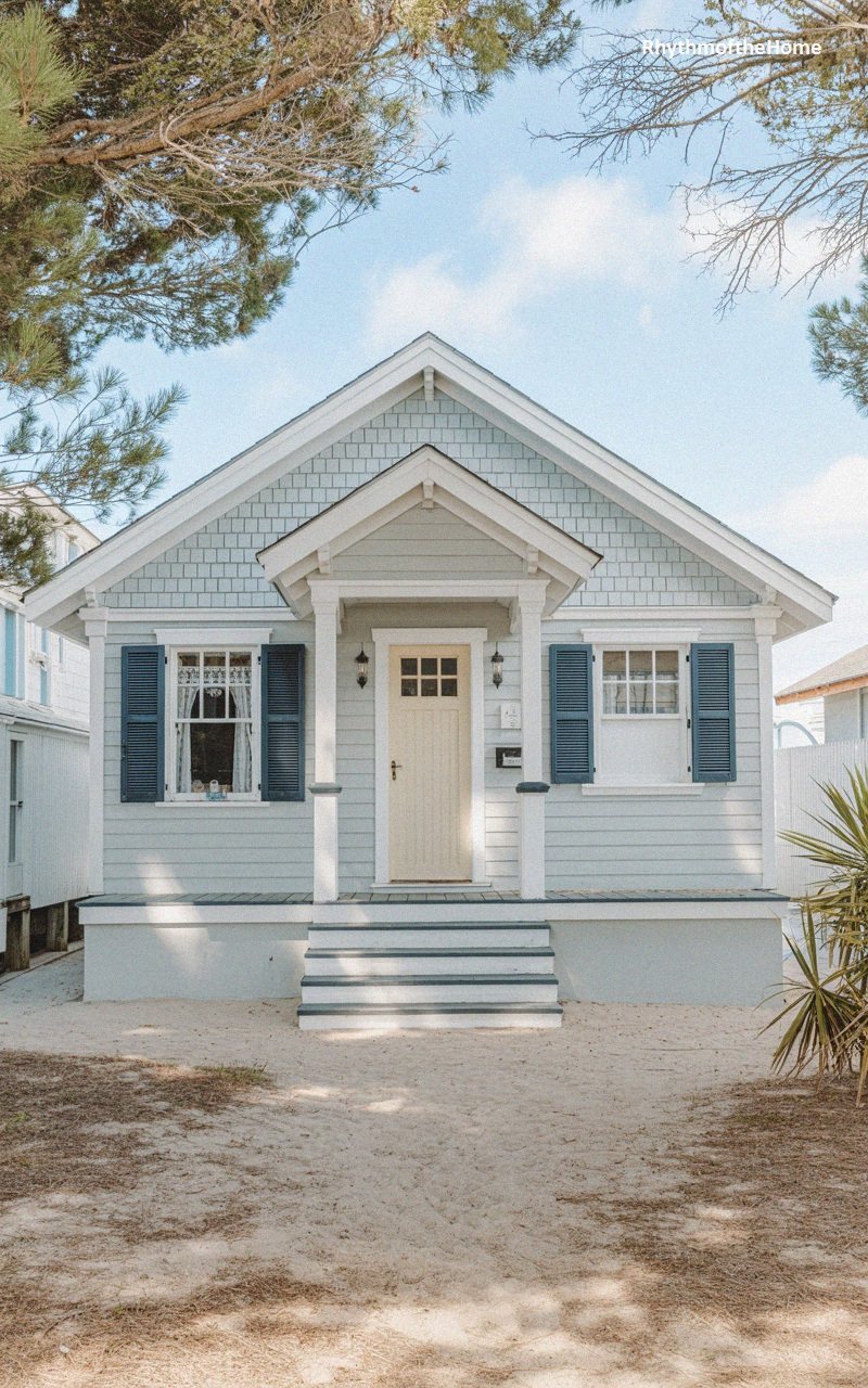 70. Beachy Pastel Porch Bungalow Home