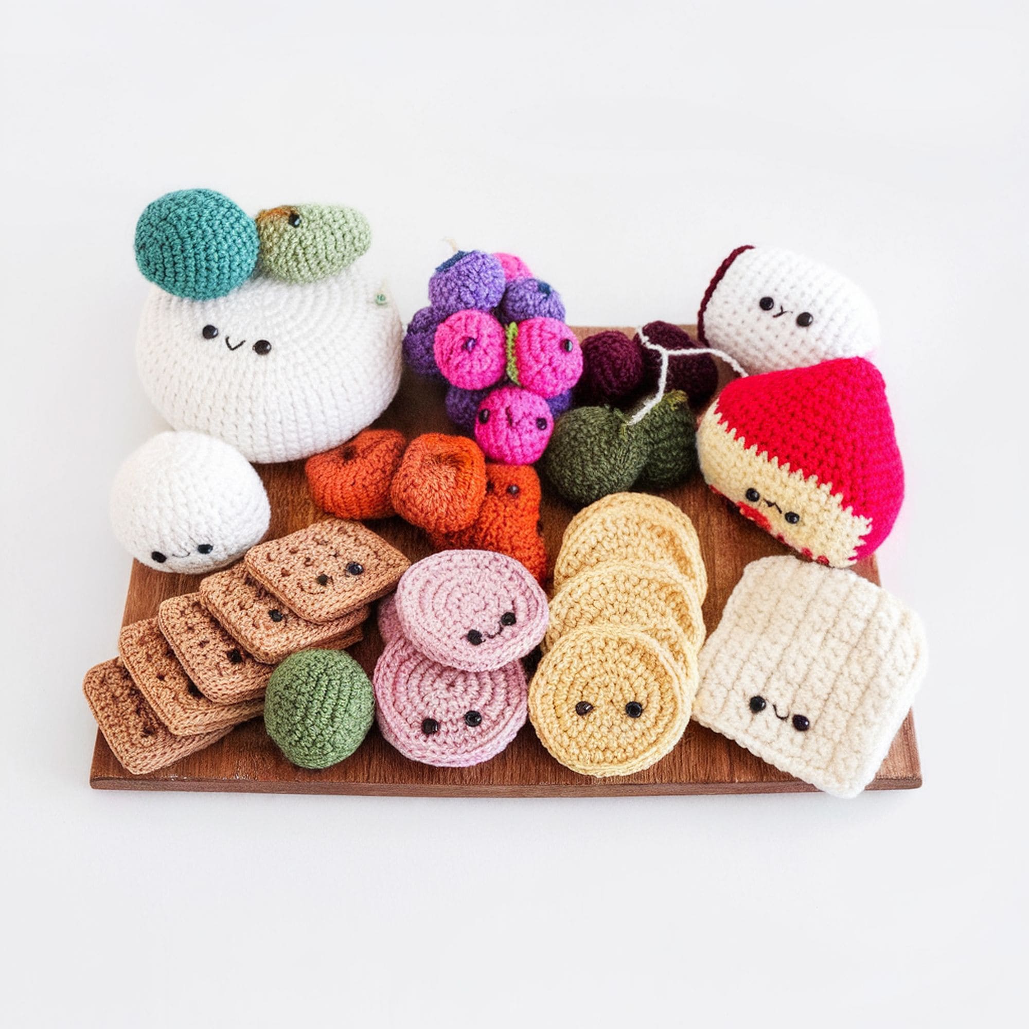 Here’s a more unique idea if you’re searching for cute amigurumi patterns. Instead of cute animals, you can make a charcuterie board full of anthropomorphized ingredients such as cheeses, meats, and crackers. This is a really interactive amigurumi set that would make a great gift for children.
