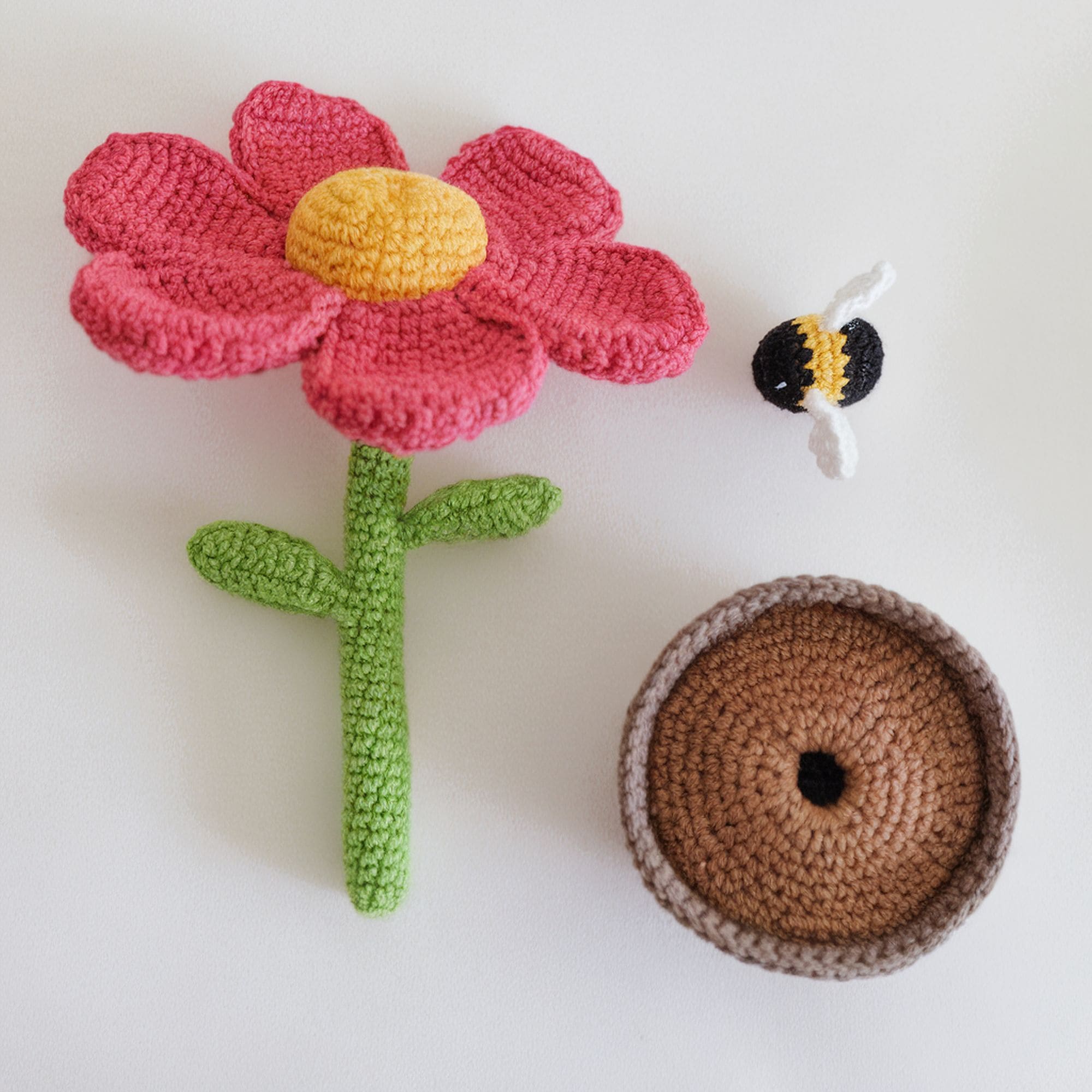 With a realistic look that might fool some bumblebees, this flower pattern has all it takes to become a favorite for amigurumi lovers. The crochet flower is designed to feature its own pot and bumblebee. It can be removed from the pot if you want to. Any windowsill can be easily decorated with this stylish amigurumi pattern.