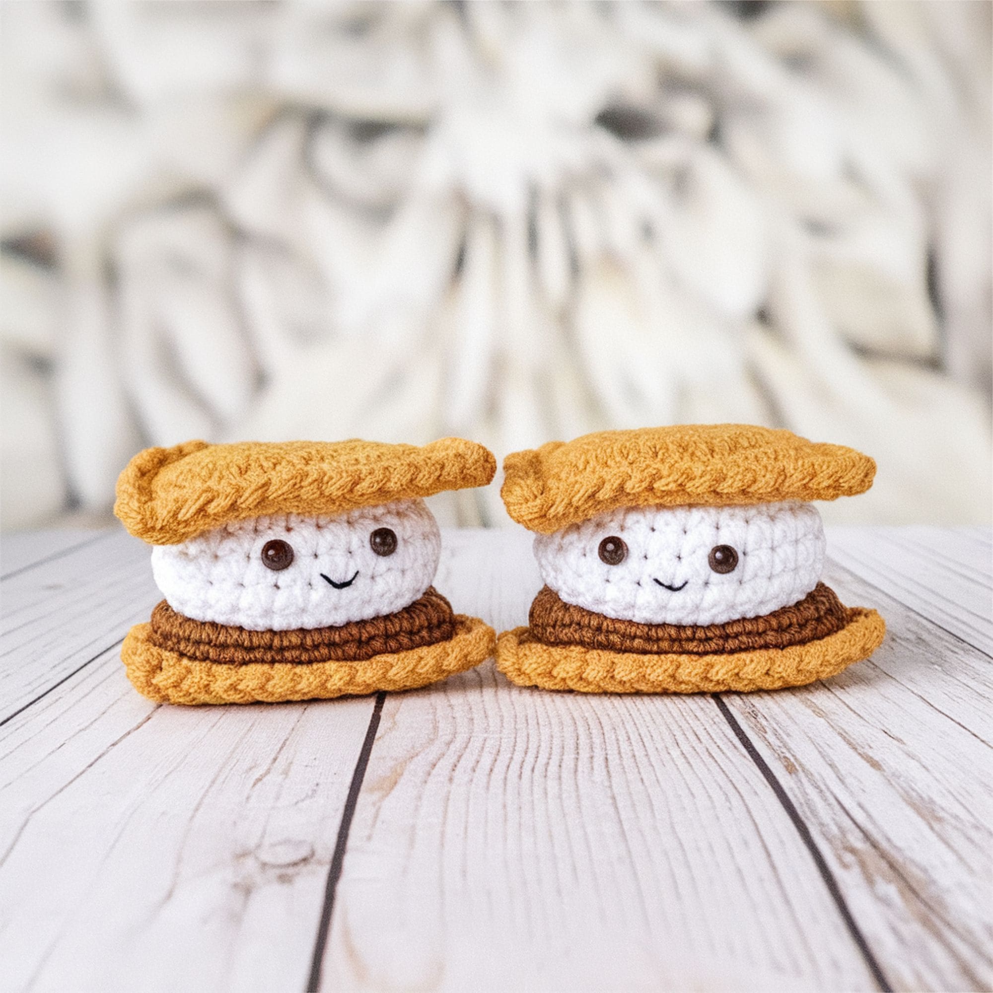Food seems to be very popular when it comes to amigurumi designs. If you’re interested in creating a cute s’more plush, check out this amigurumi pattern. There’s something about crocheted foods with faces that makes them particularly likable. These s’mores can complement other amigurumi projects such as a crocheted campfire.