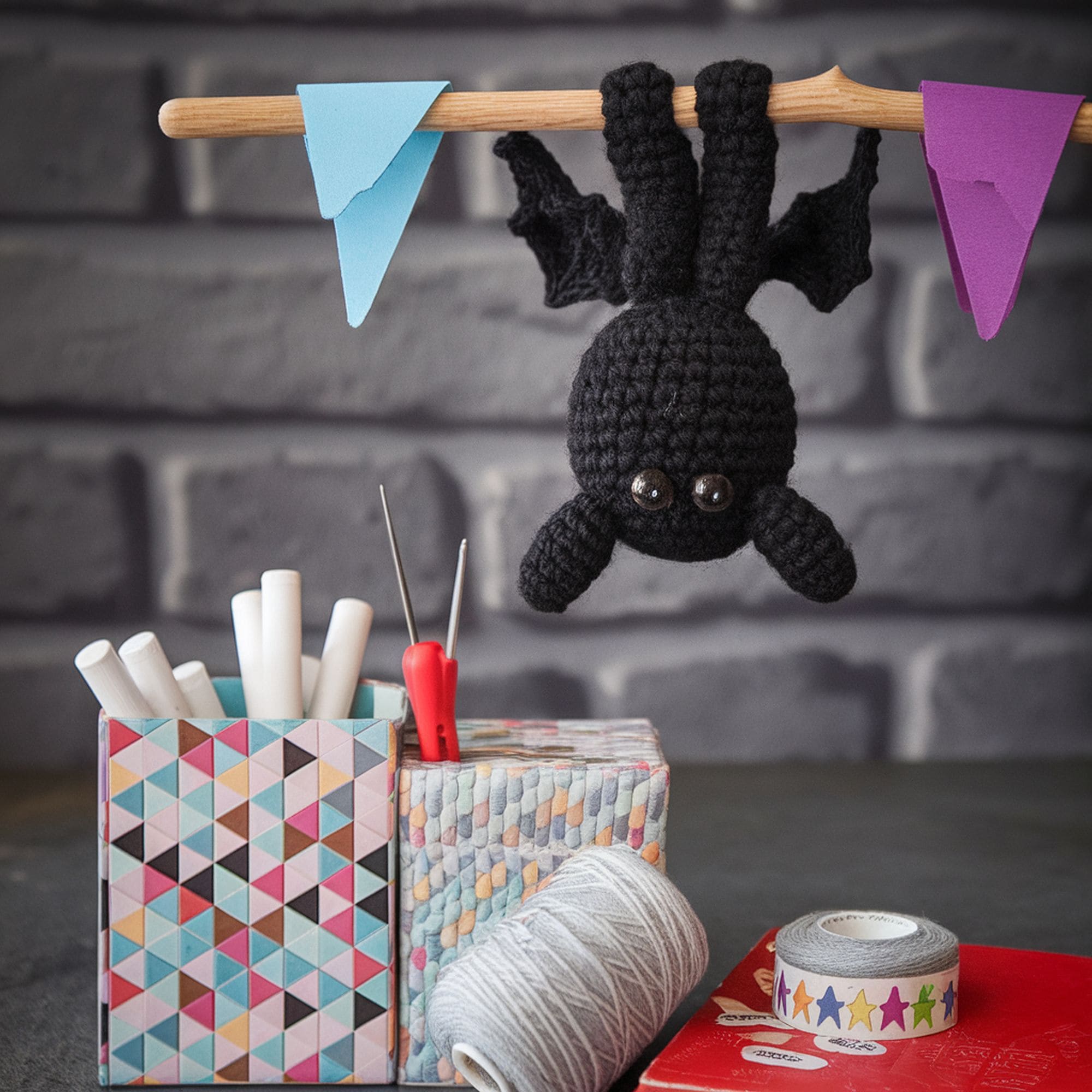 Not all Halloween decorations should be scary. Some of them can be really cute. This crocheted bat represents a solid example. It’s a fun Halloween-themed amigurumi with loops on its feet that allow him to hang upside down. Due to the use of pure black yarn, the bat keeps a spooky vibe while its crocheted appearance gives off an adorable impression.