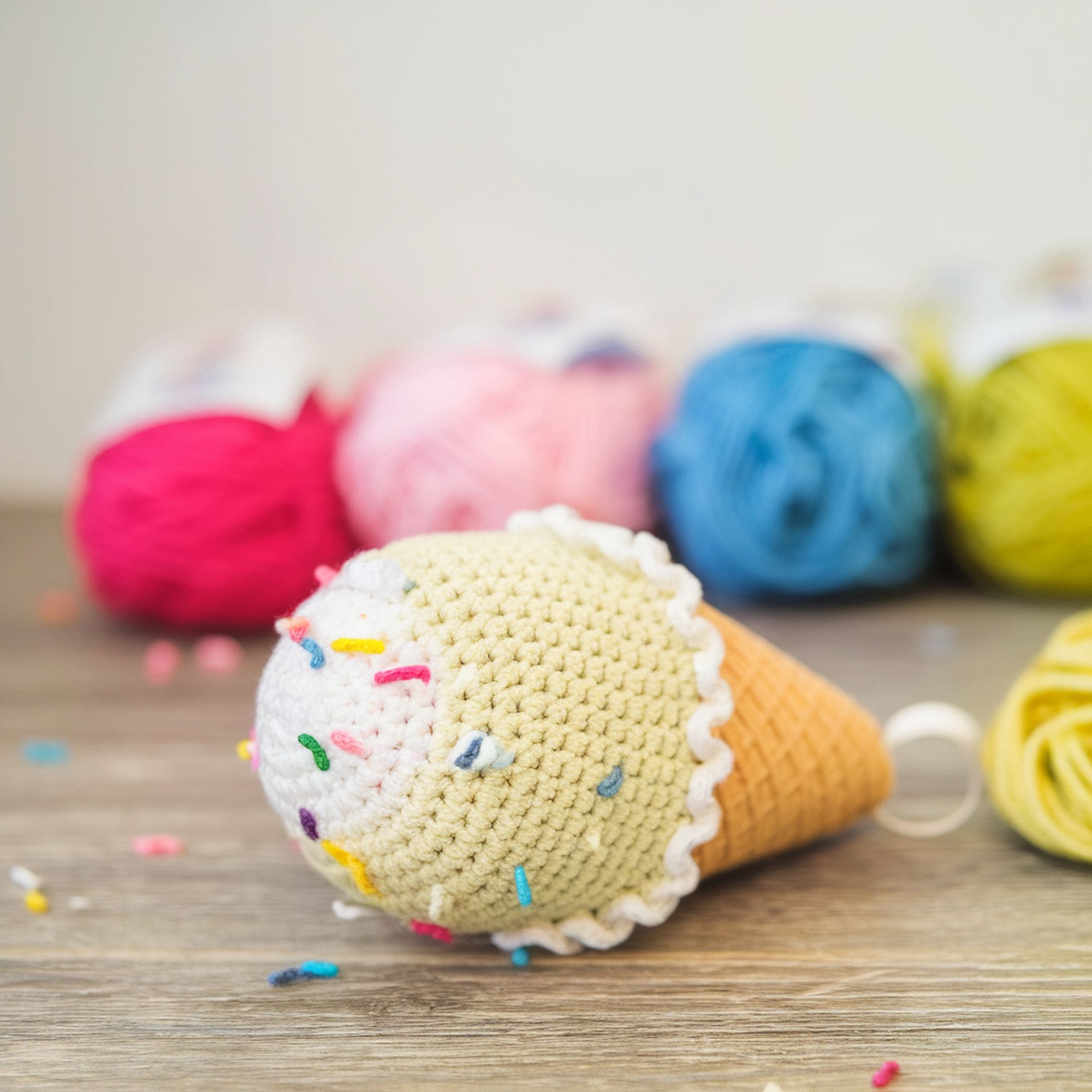 Do you want to try your hands at a really basic amigurumi pattern? If that’s the case, you should consider this ice cream design. The project is very beginner-friendly while offering a cute appearance that will be the delight of many children. There’s a version that resembles a plain strawberry ice cream and another one showcasing a vanilla flavor with sprinkles.