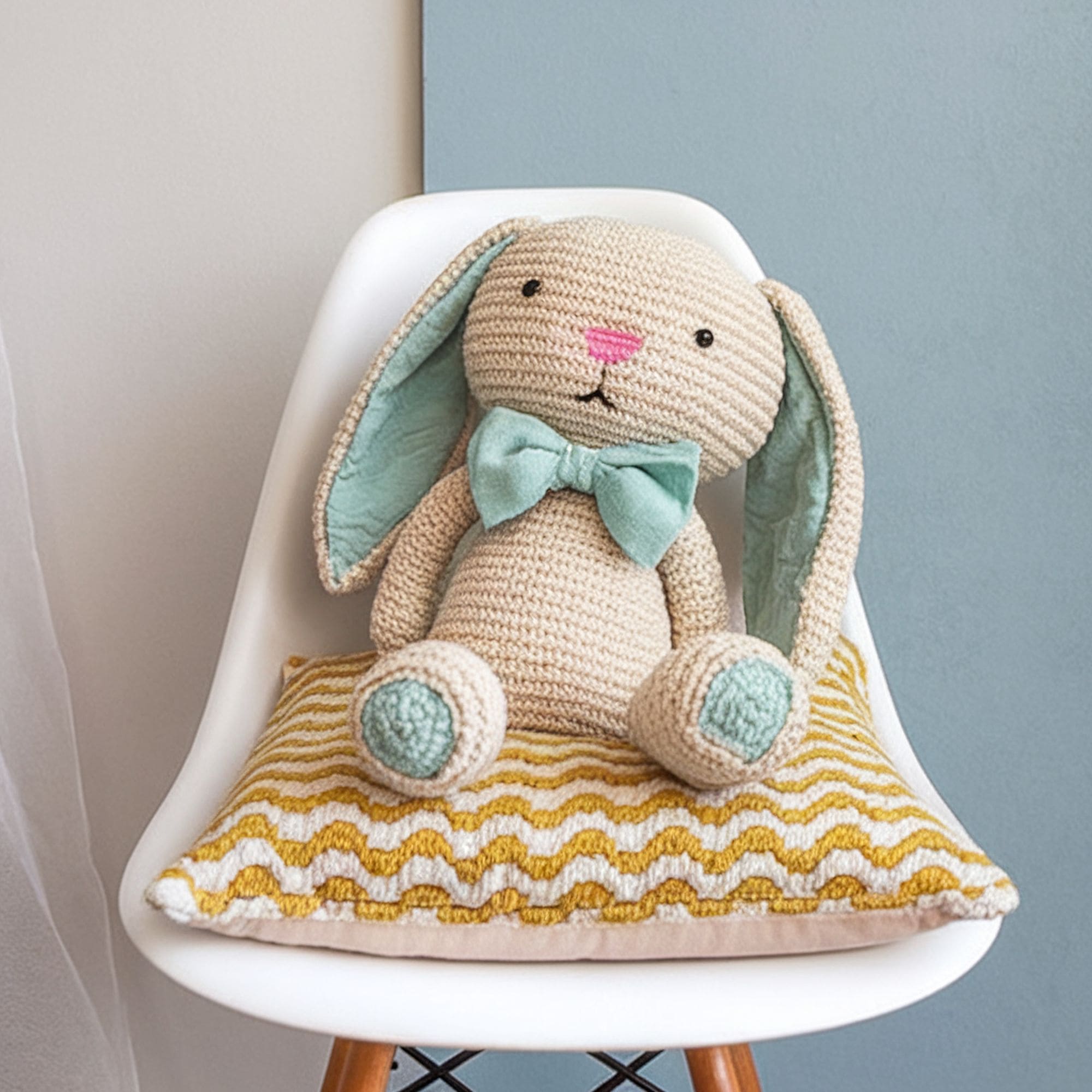 Want to try your hand at a more complex amigurumi idea? Check out this giant bunny whose cuteness will quickly make it the favorite toy of any child. It’s designed with large flapping ears and a stylish bow tie. Bunnies are some of the most popular amigurumi animals to craft and this free pattern won’t disappoint.
