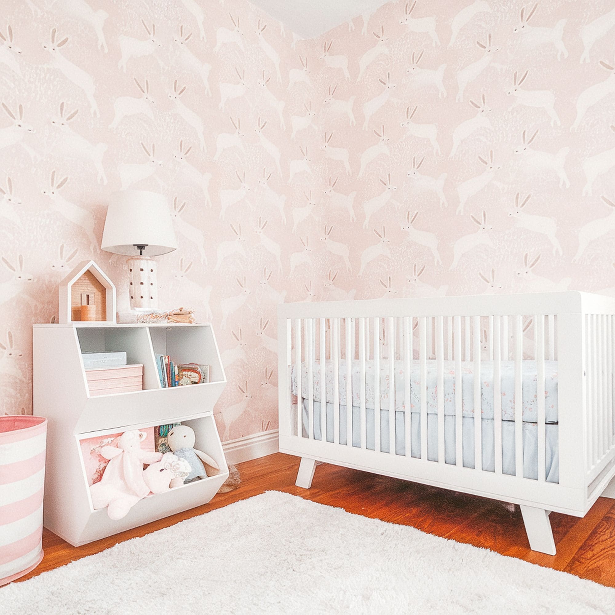 One of the cutest animal themes to try is a sweet bunny one that makes use of a soft combination of pink and white resulting in a girly color scheme. The removable wallpaper shows off leaping bunnies in a fun pattern. It can be an excellent décor choice for a baby girl. All the furniture and accessories seem to match the pleasant atmosphere of the nursery as well. If you’re curious about the work involved in creating this kind of bunny theme.