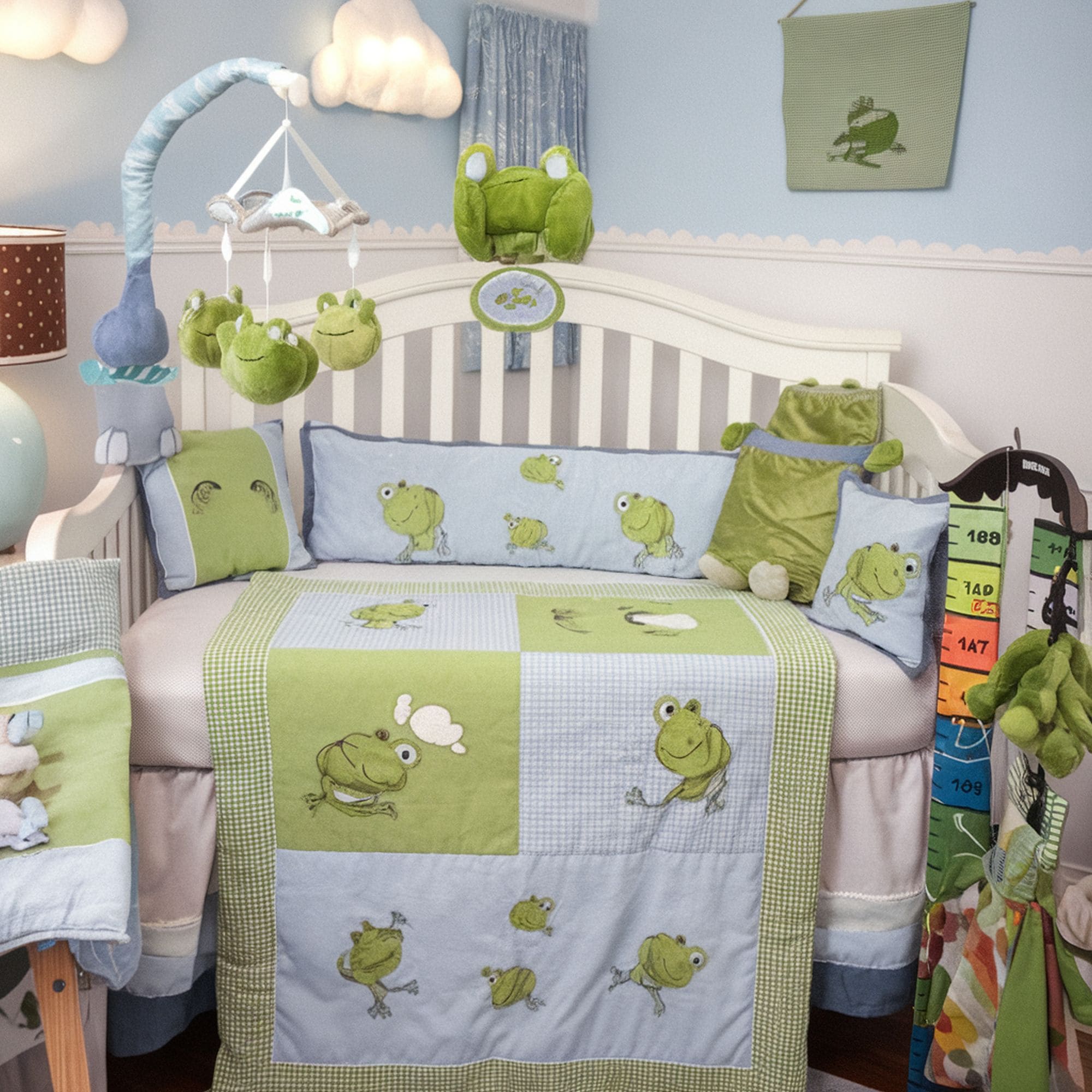 Friendly frogs can be successfully used as central décor motifs for an animal-themed nursery. Stick to a simple color scheme that combines some shades of blue and green for a fun theme that will be appreciated by any toddler. Happy frogs can be included throughout the room and the most impressive visual effect can be achieved with the help of a beautiful wall painting.