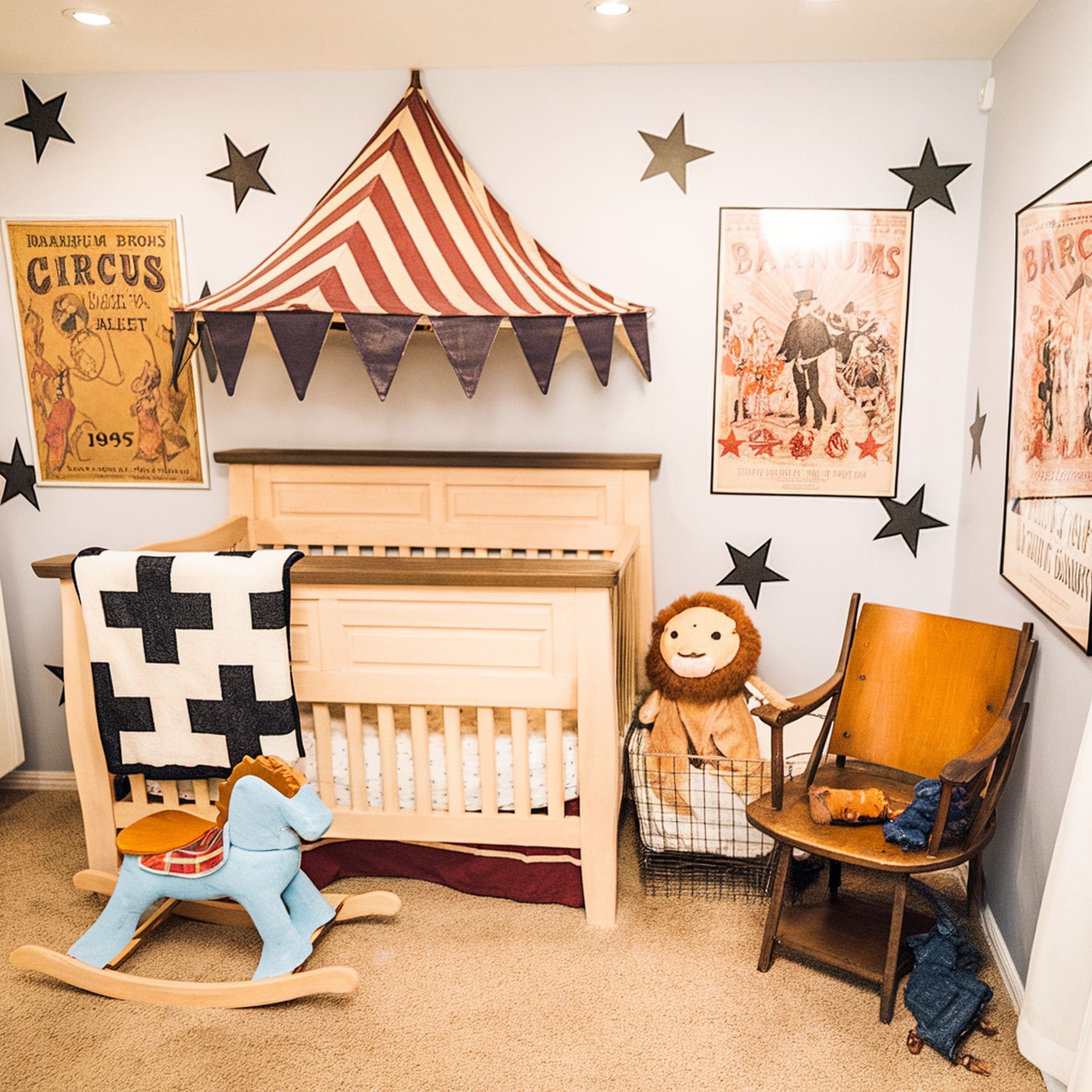 Here’s a more unique theme that’s sure to be delightful for any playful baby. This nursery makes use of an inventive circus theme which delivers some solid vintage vibes thanks to the furniture pieces and posters. There are lots of animals that can be included to fit with this theme. Some of the most relevant are lions, elephants, and seals. Anyone looking to try a similar style for their child’s nursery should check out the details about how this cute circus-themed nursery came to life.