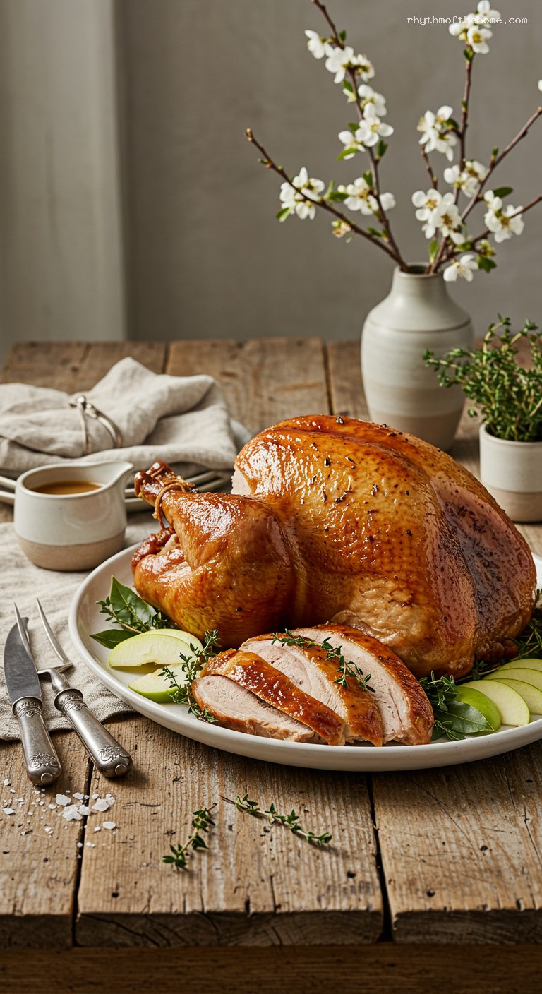 - Herb-forward: Add a handful of thyme stems and a few extra bay leaves to the brine; tuck fresh sage under the skin before roasting.