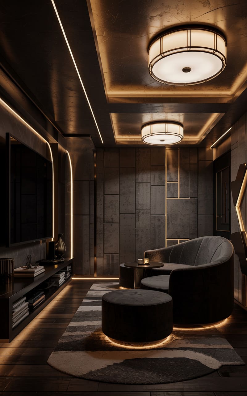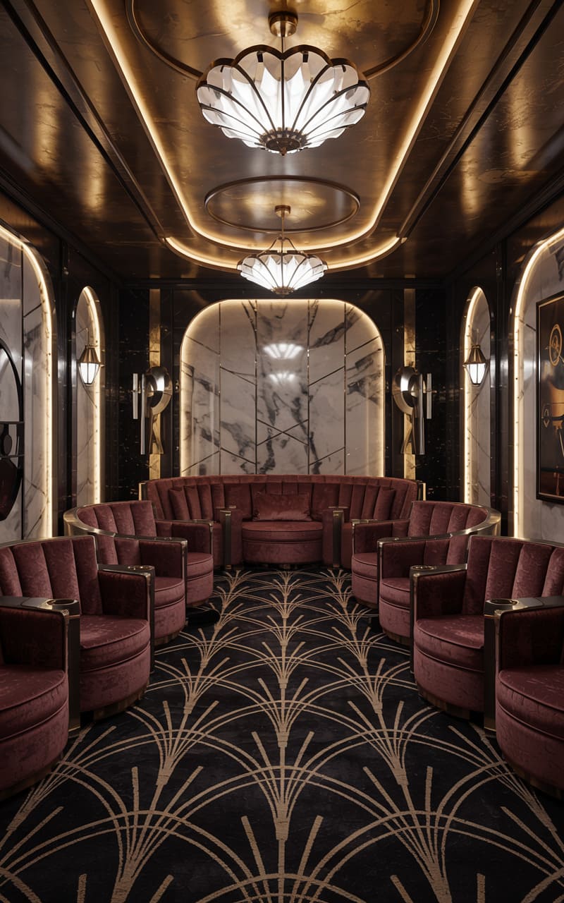 2. Noir-Inspired Art Deco Home Theater