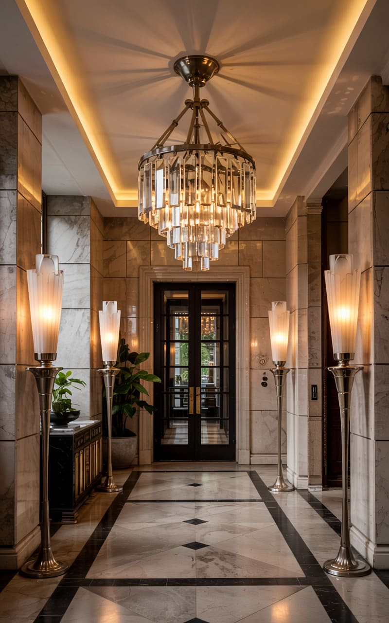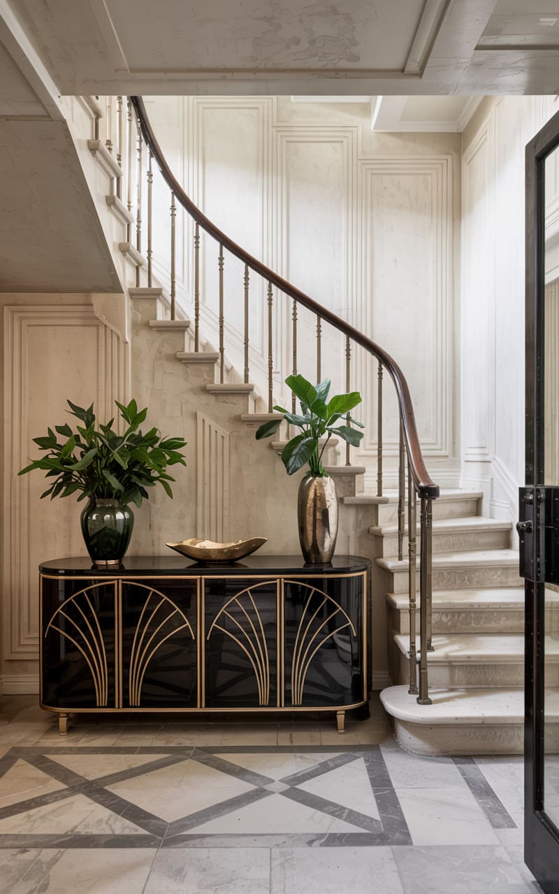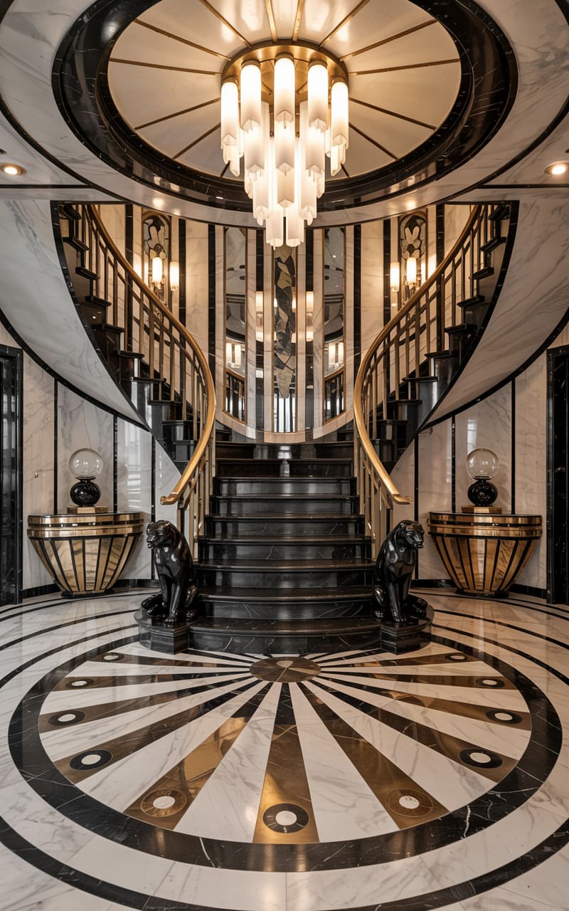 9. Opulent Deco Entry Hall with Grand Staircase