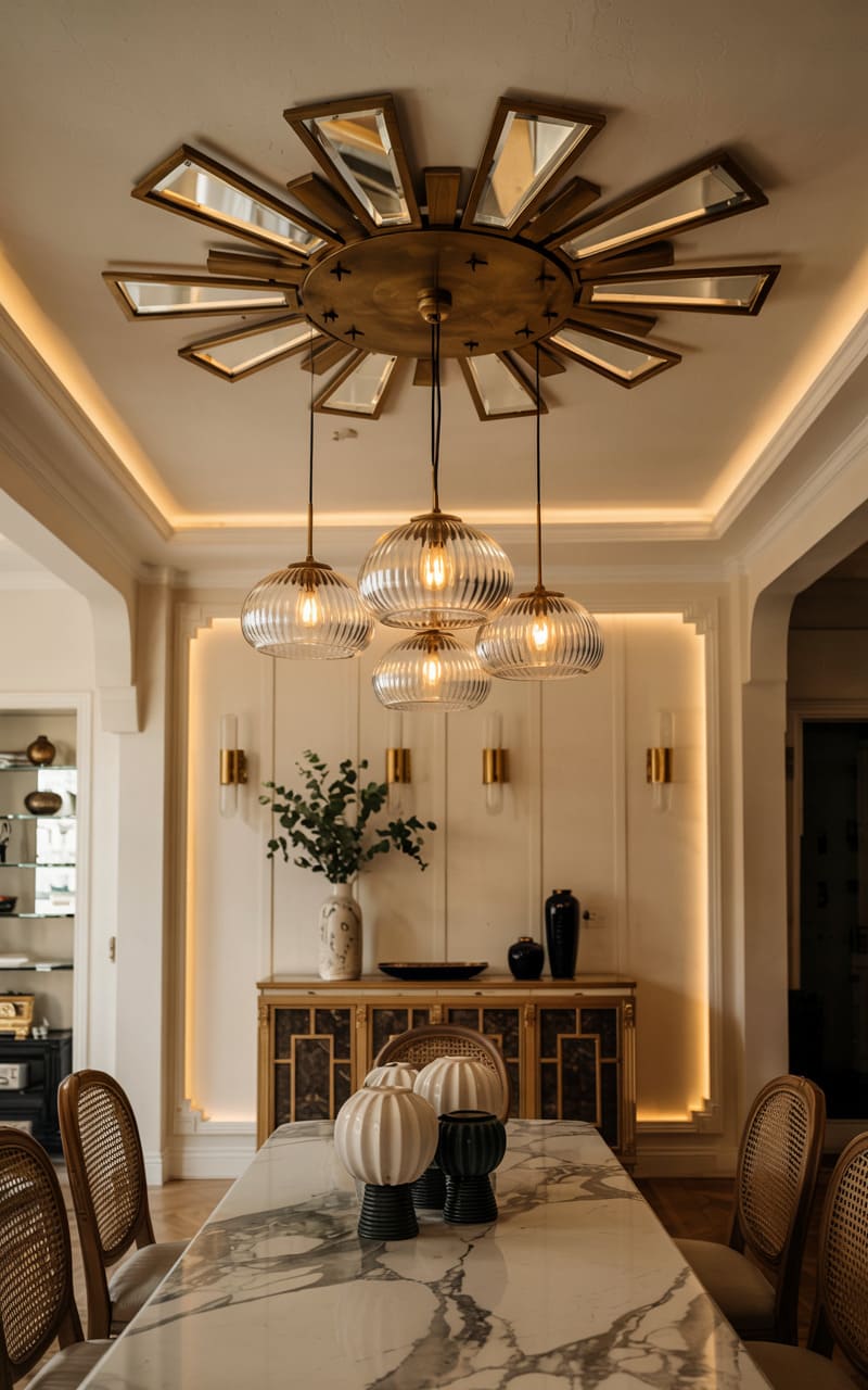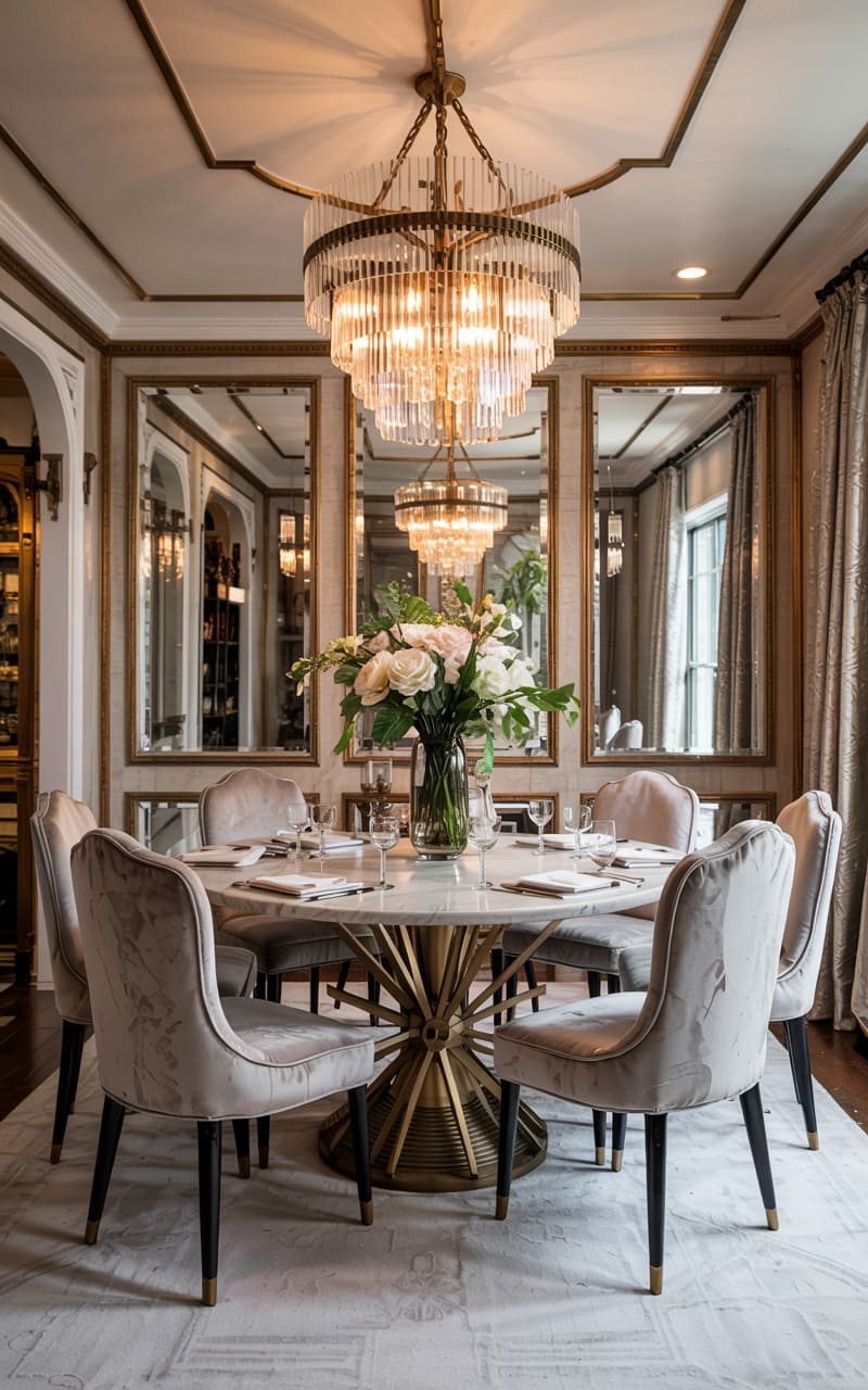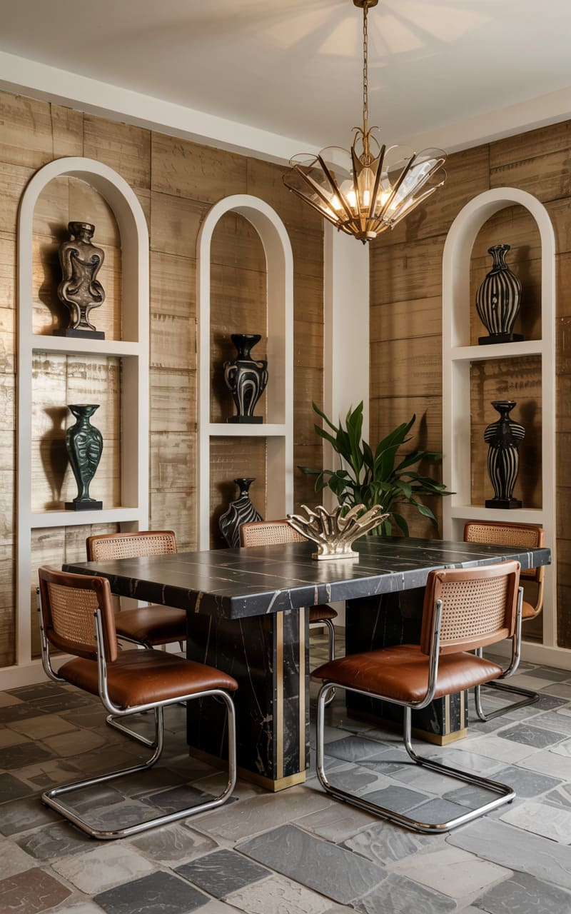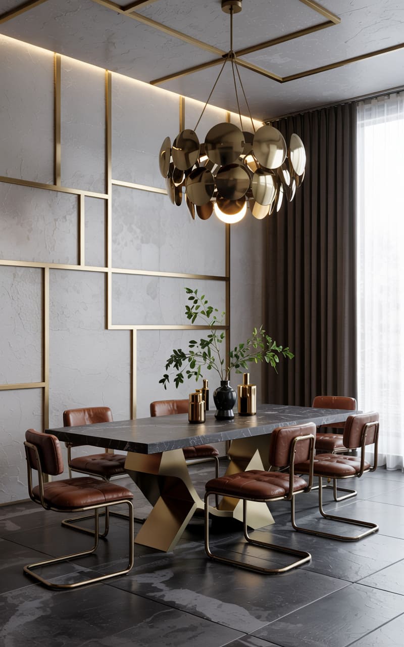 3. Geometric Deco Dining Room with Marble and Brass