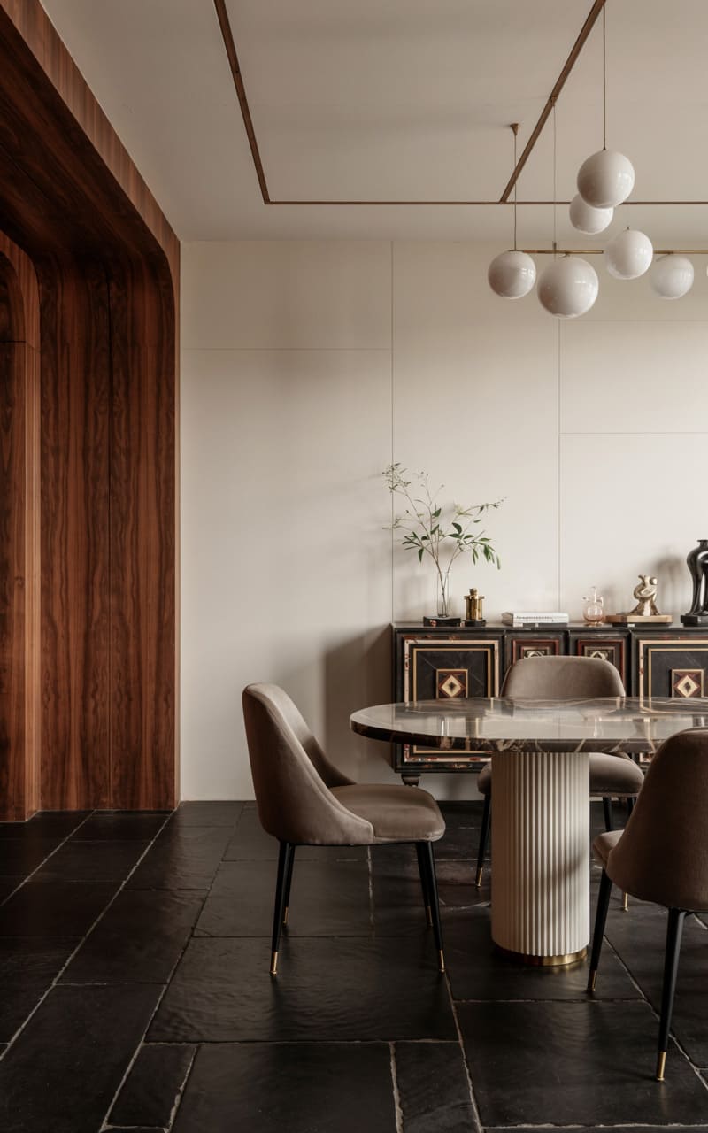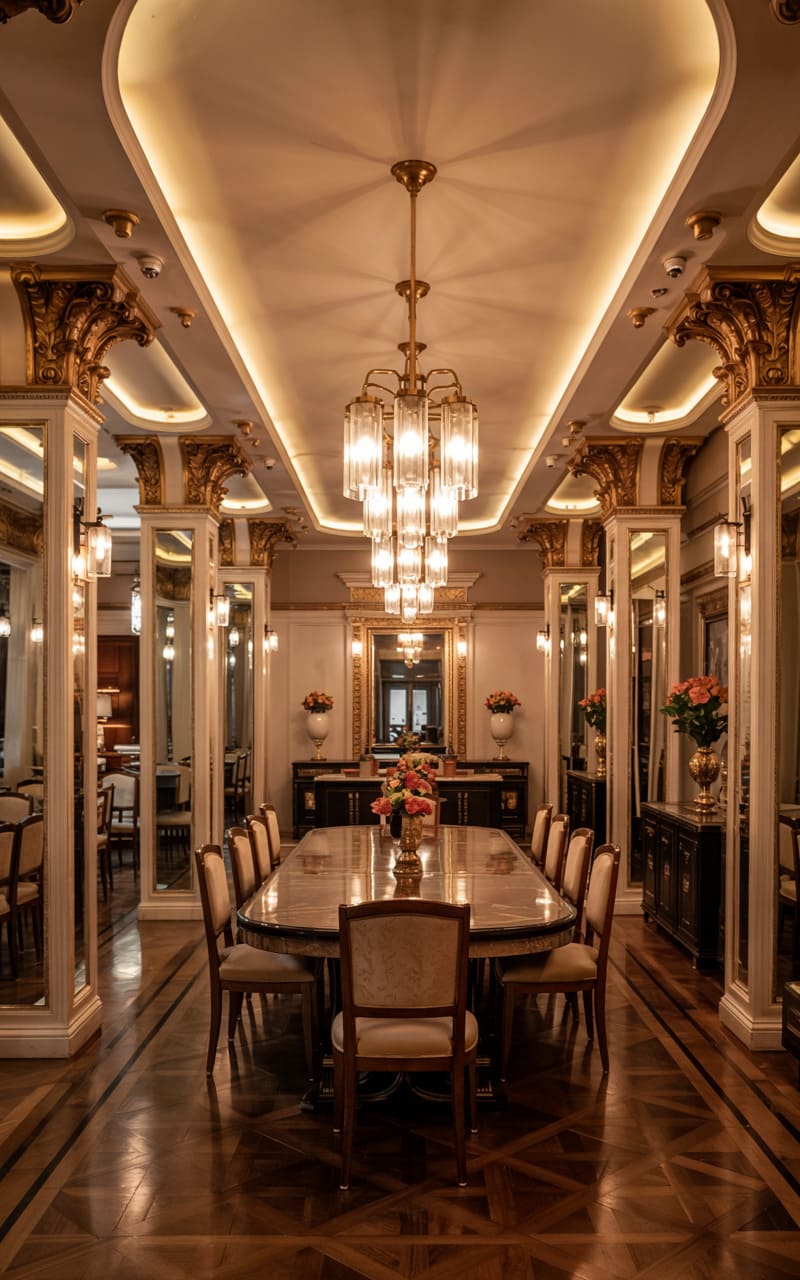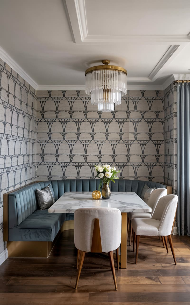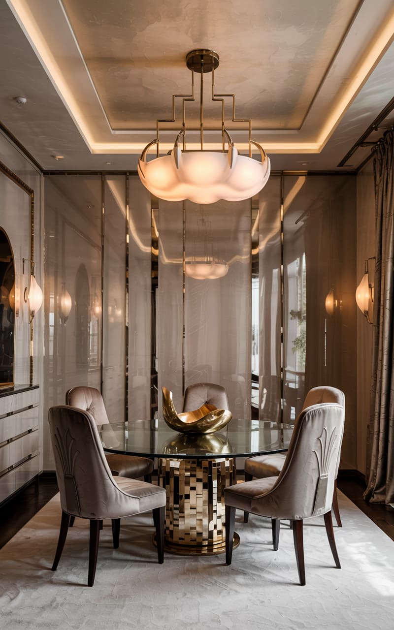3. Geometric Deco Dining Room with Marble and Brass