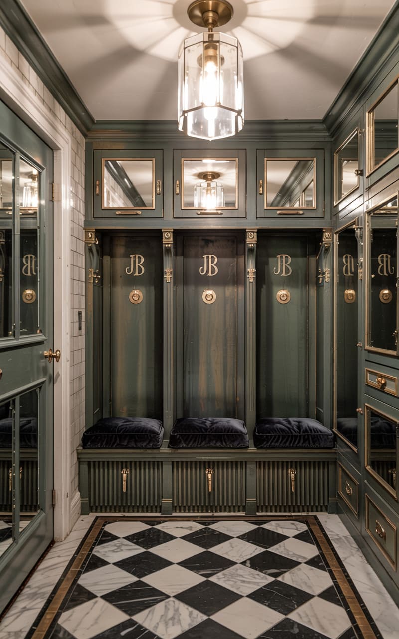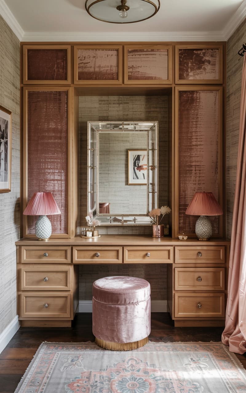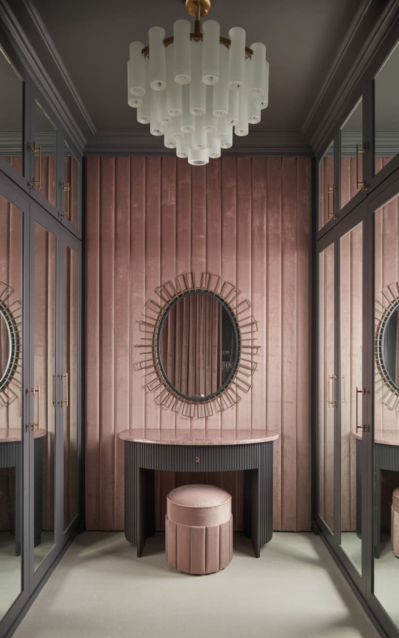 39. Deco Dressing Room with Patterned Velvet and Suede Panels