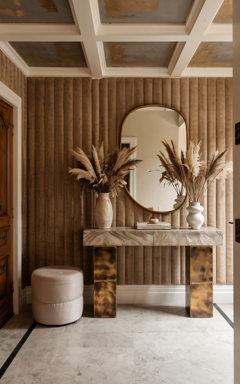 26. Deco Entryway with Console and Upholstered Bench
