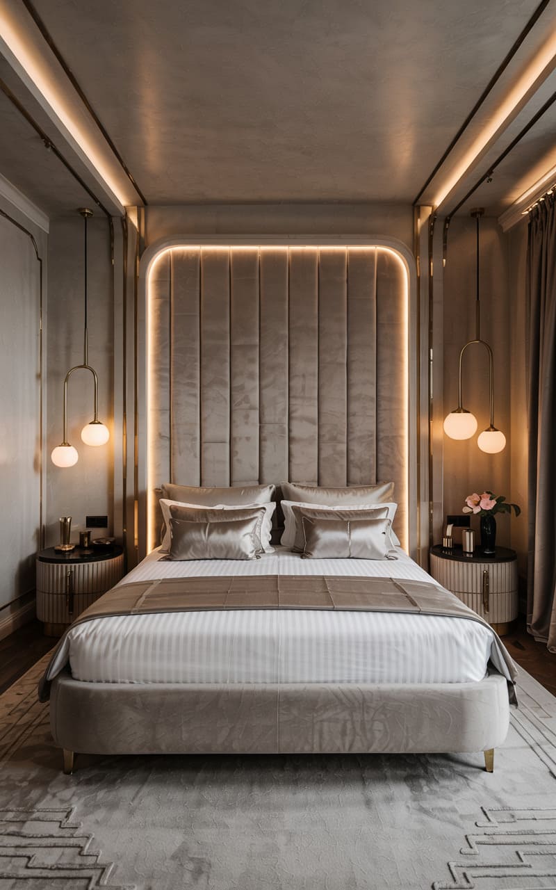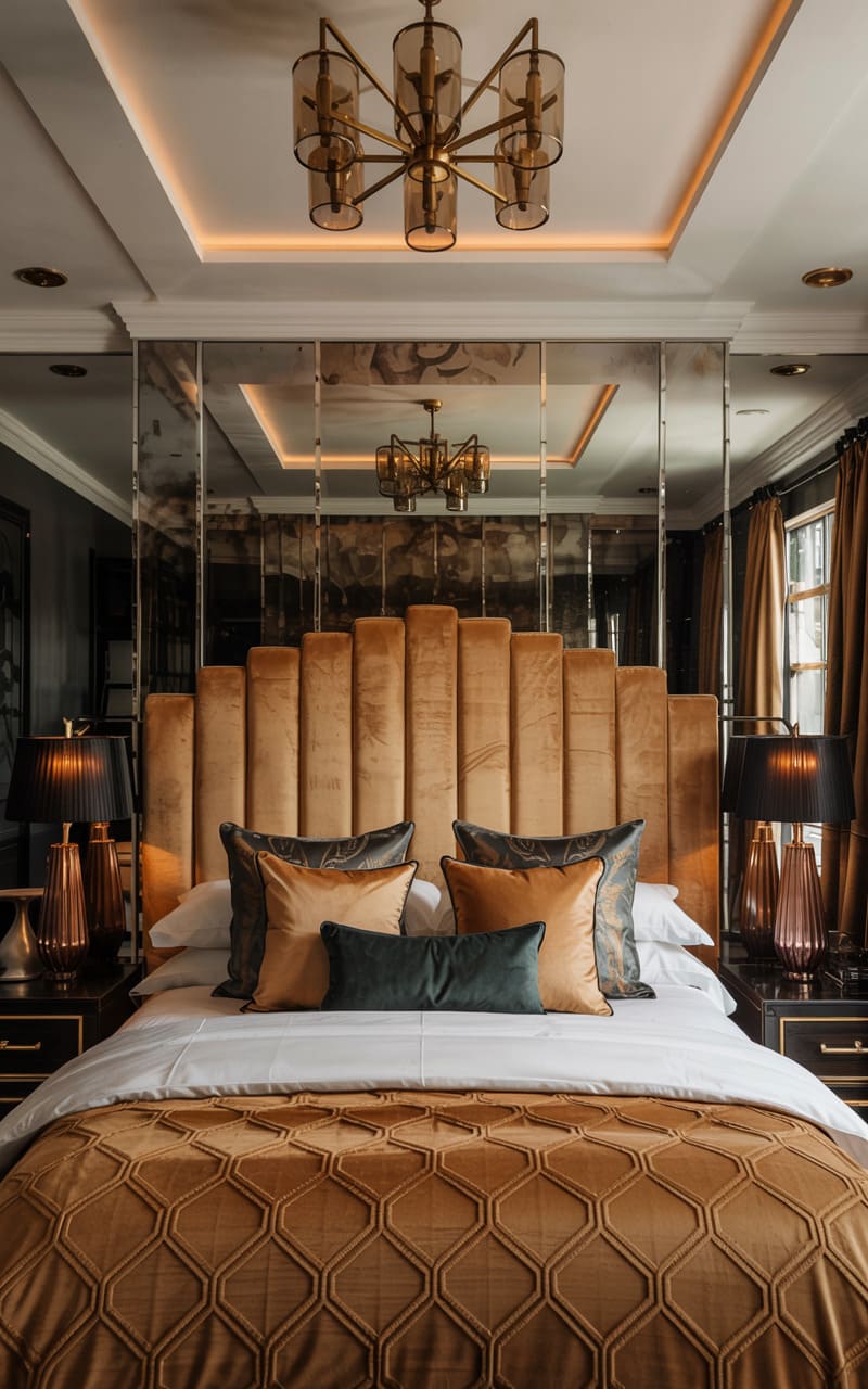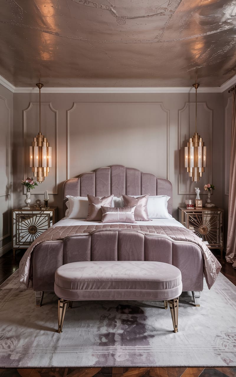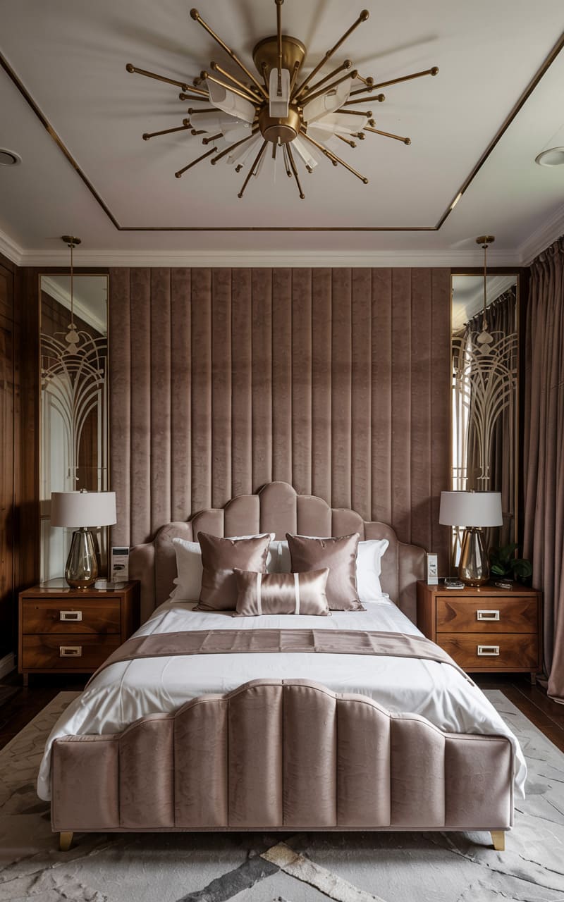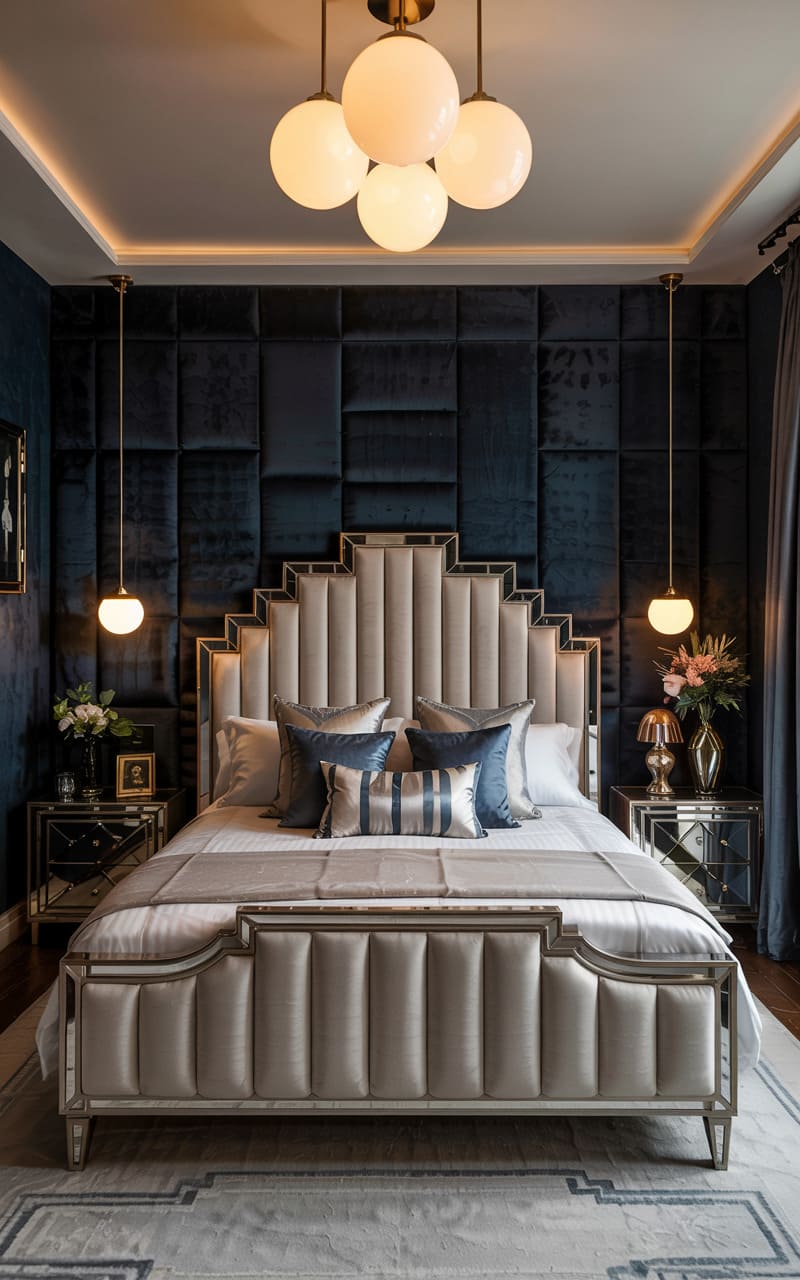 31. Velvet and Satin Art Deco Master Bedroom
