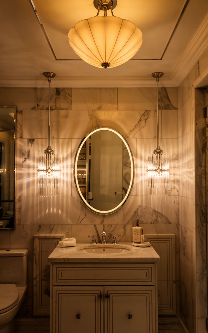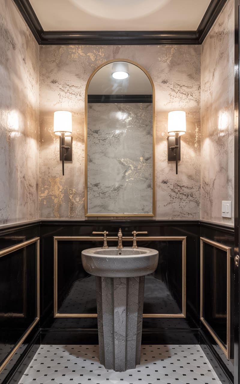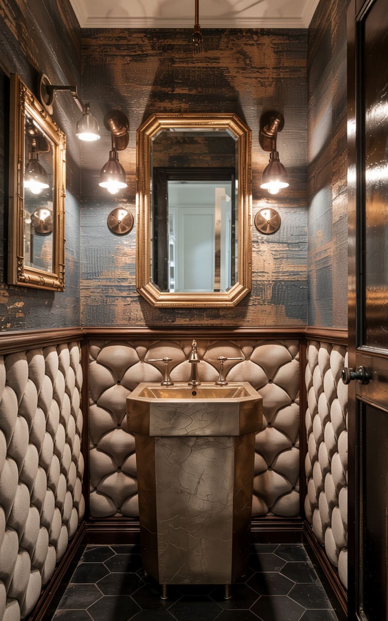 35. Deco Powder Room with Velvet and Satin Touches