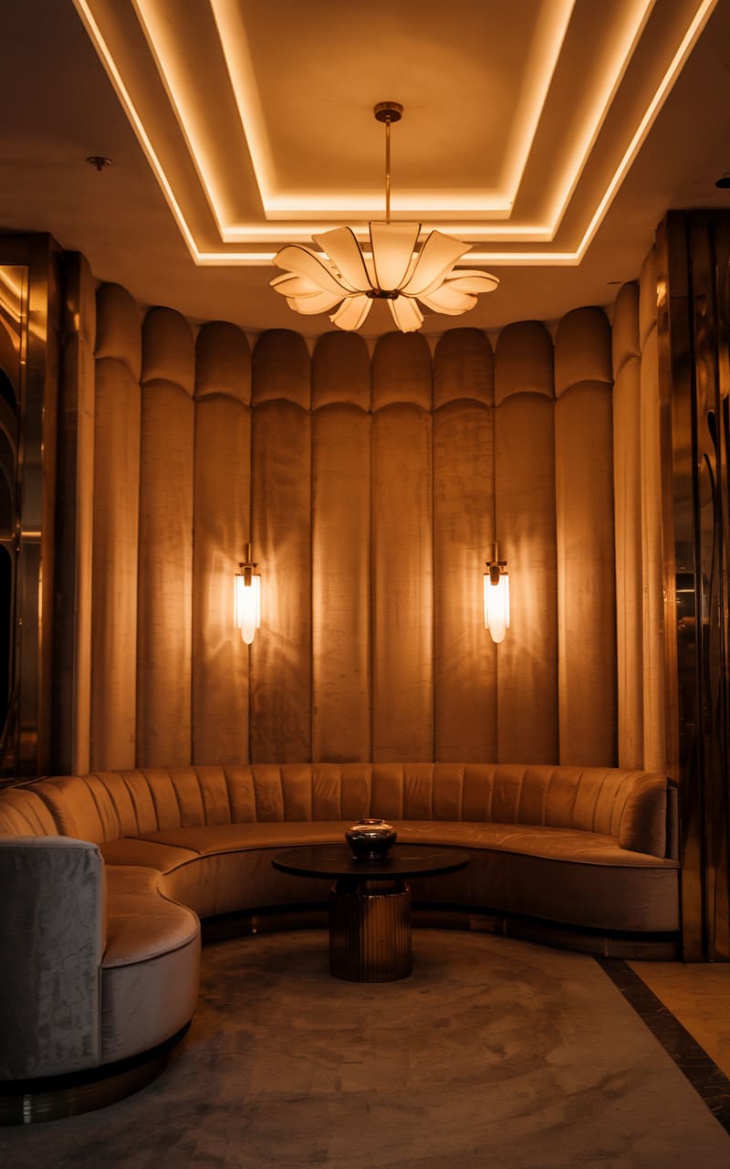 21. Curved Deco Lounge with Sculptural Velvet Seating