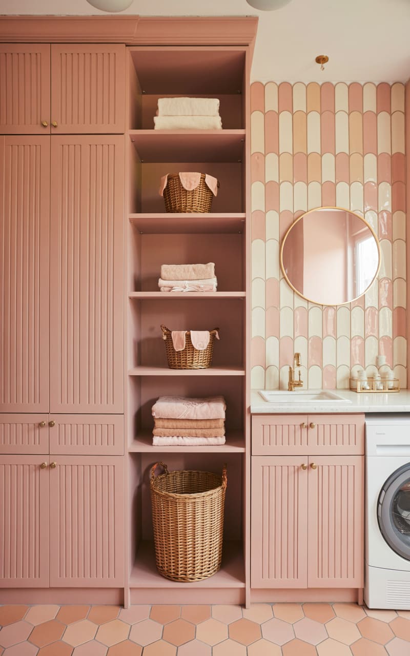 165. Kitchen with Soft Blush Cabinets and Fluted Glass Fronts