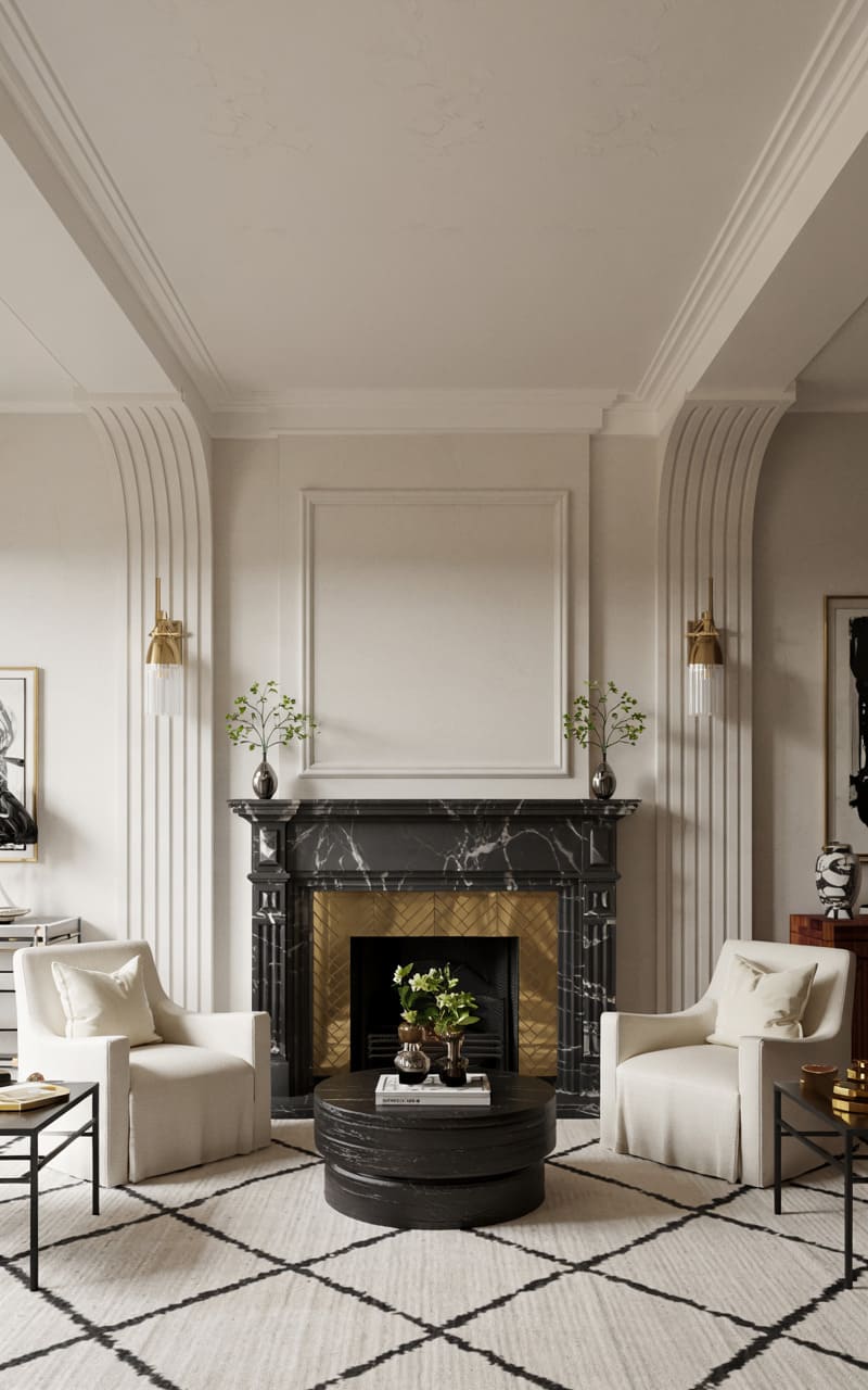 11. Minimalist Art Deco Loft with Concrete and Brass