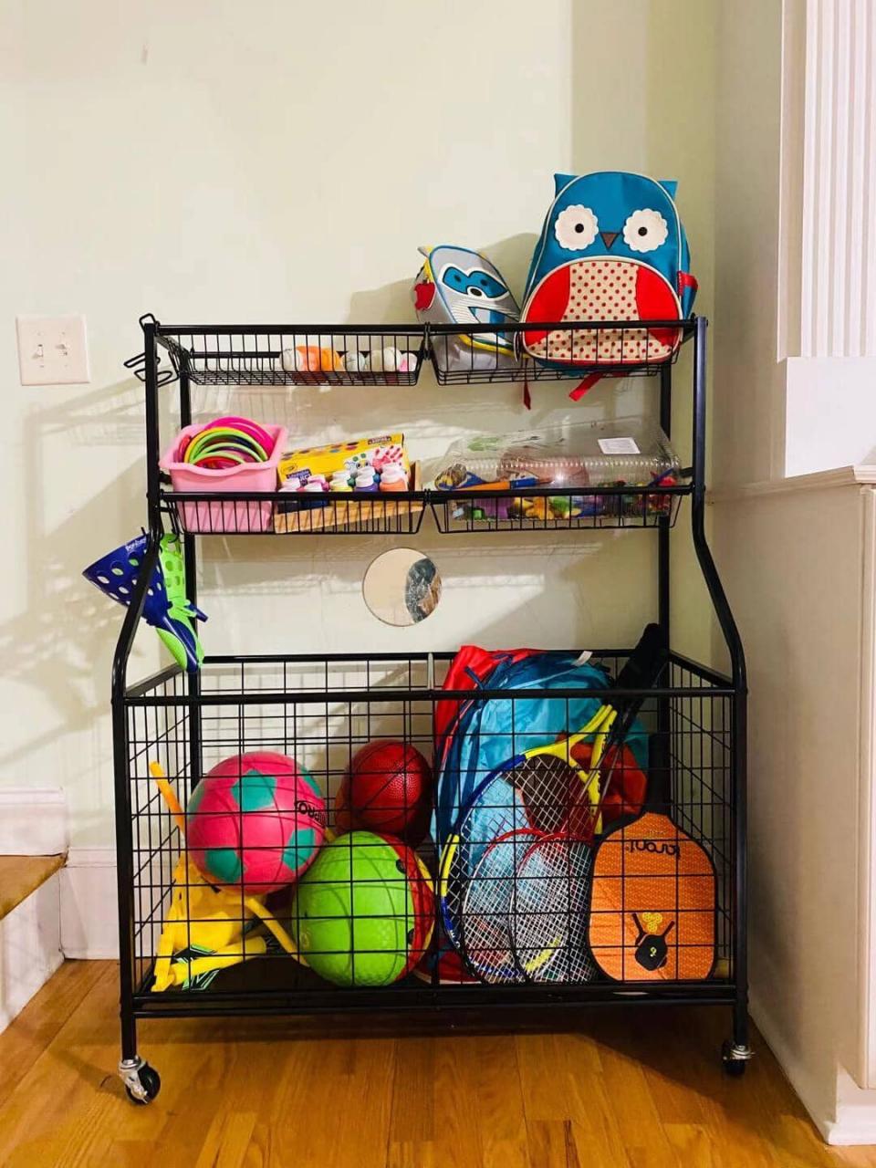 If your kids spend a lot of time doing sports, it’s probably easier to encourage them to store the backpacks together with their other sports equipment. A dedicated organizer rack is suitable for more things than tennis rackets or skateboards. It’s the perfect storage solution for a wide range of accessories such as backpacks and school bags. We recommend this wire storage rack that works nicely for many sports and storage needs.