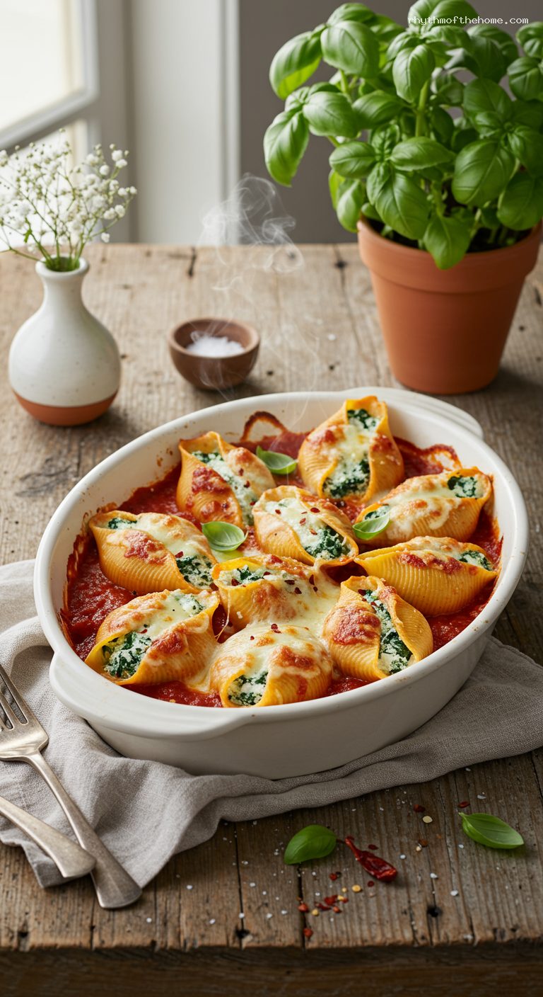 - Classic Italian comfort: tender shells, creamy herbed ricotta, bright marinara, and melty cheese.