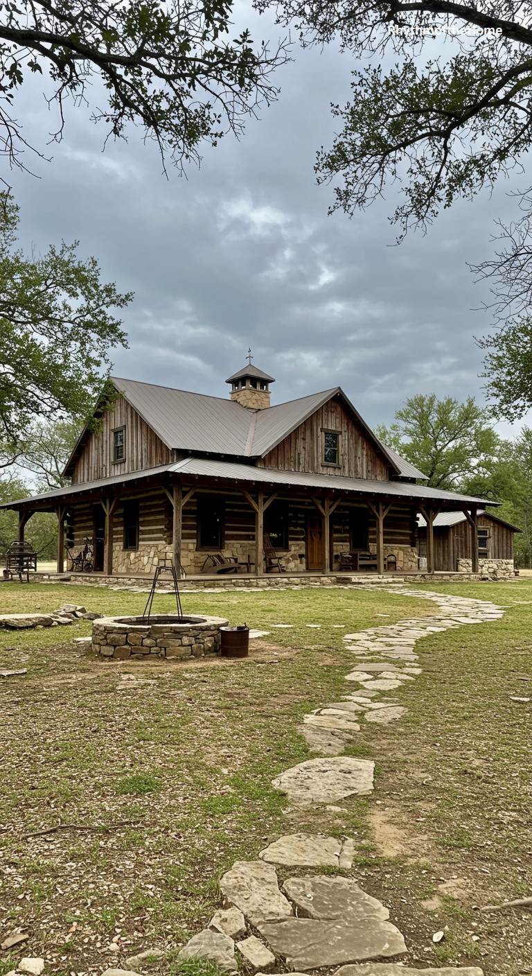15. Log and Stone Ranch Barndominium Home