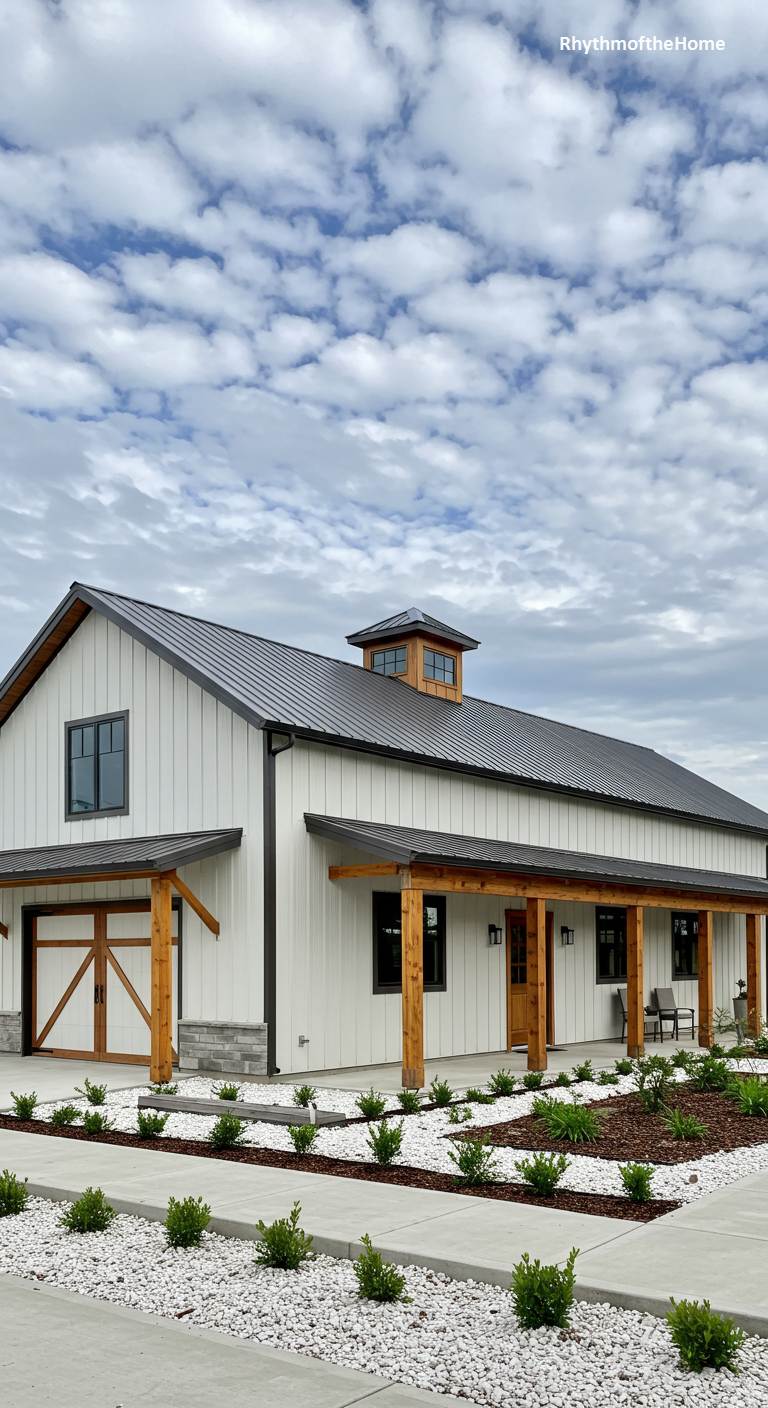 24. White and Wood Barndominium Home