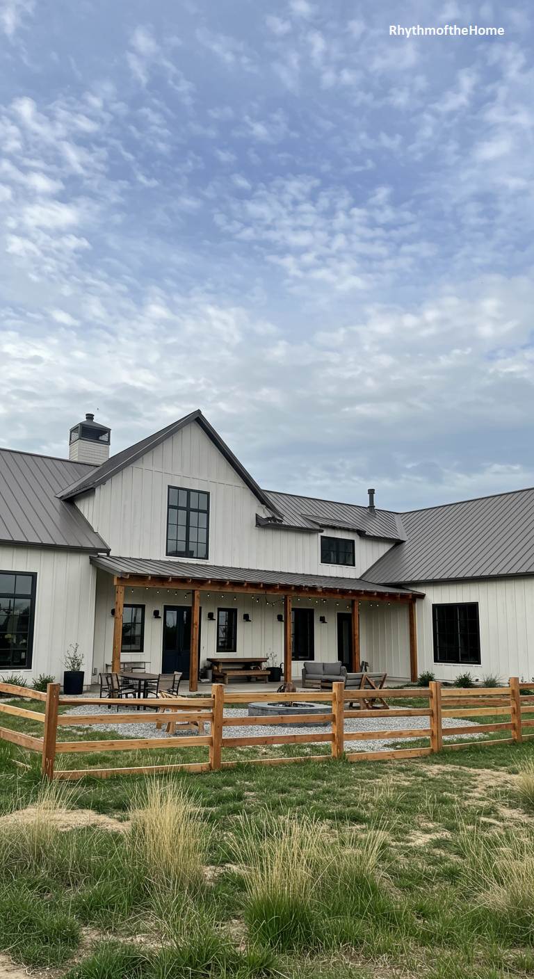 74. Creamy White Farmhouse Barndominium Home