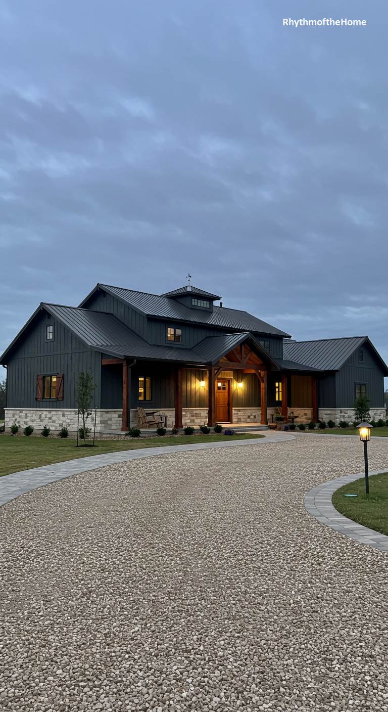 43. Modern Black Barndominium Home
