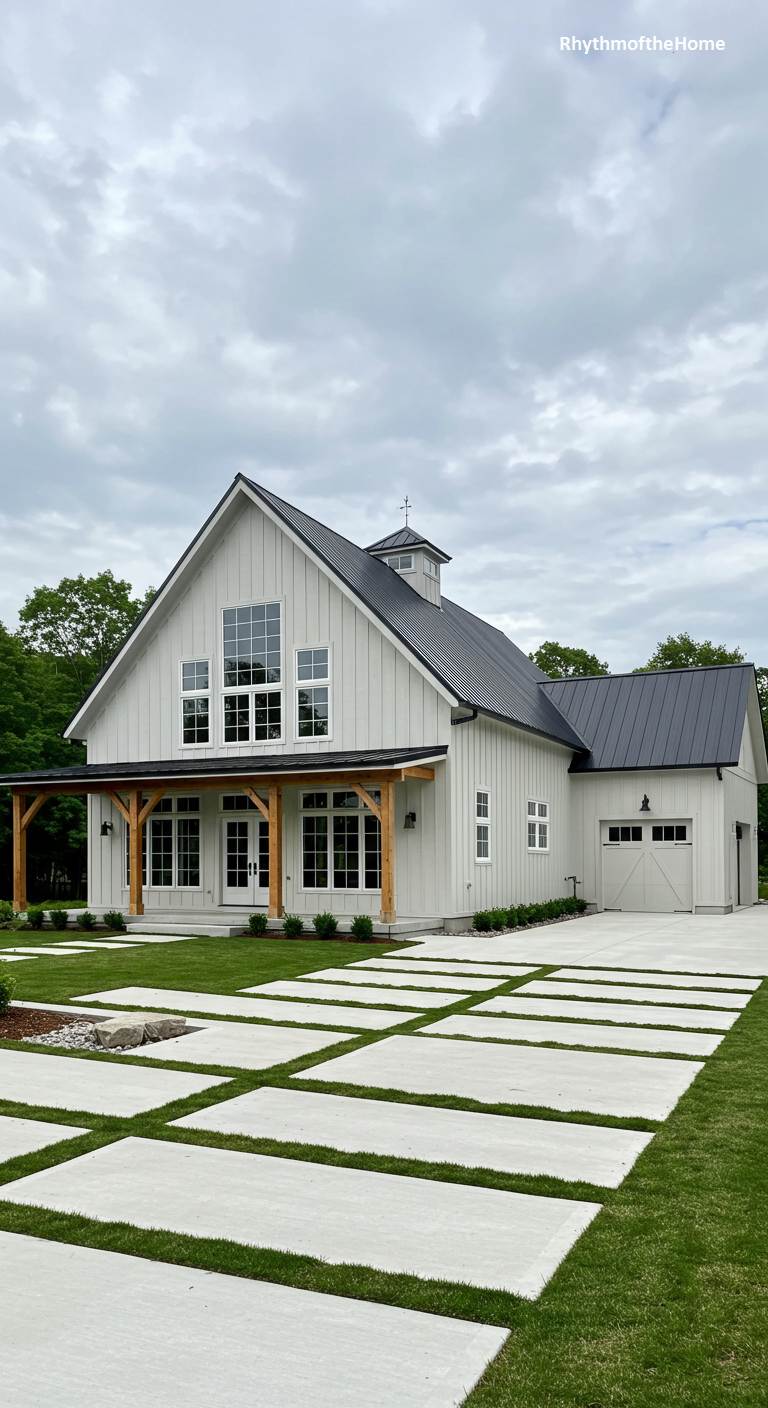 95. Modern Farmhouse with Ribbon Driveway Barndominium Home