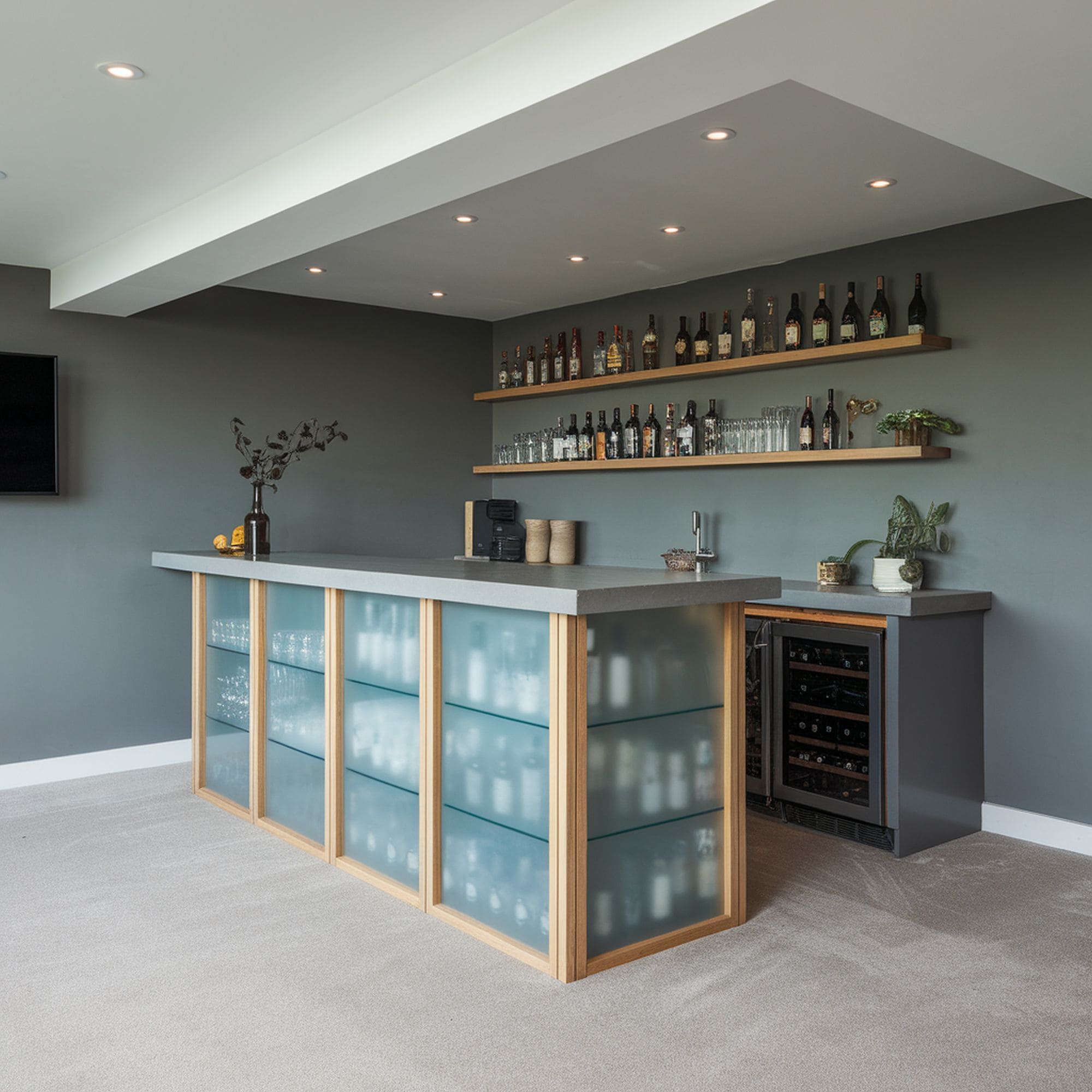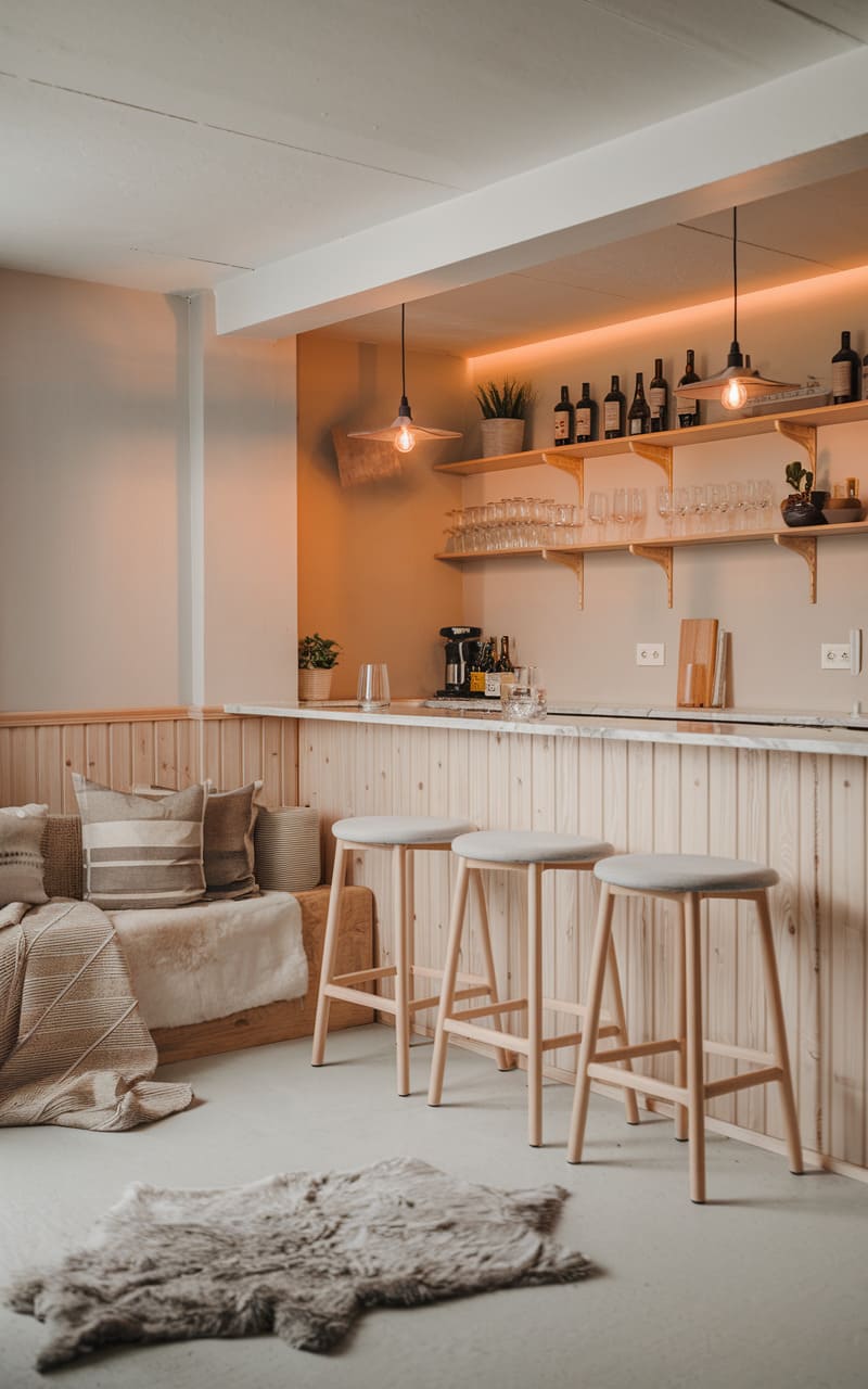 13. Minimalist Scandinavian Basement Bar