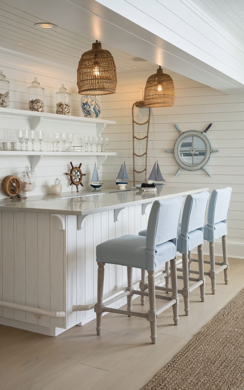 23. Coastal Themed Basement Bar