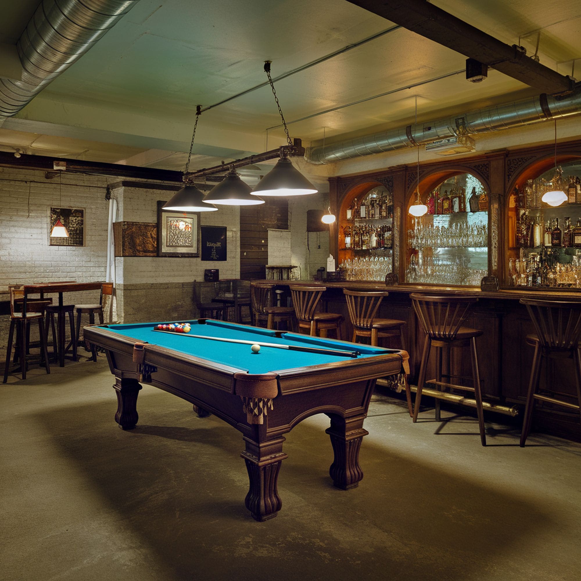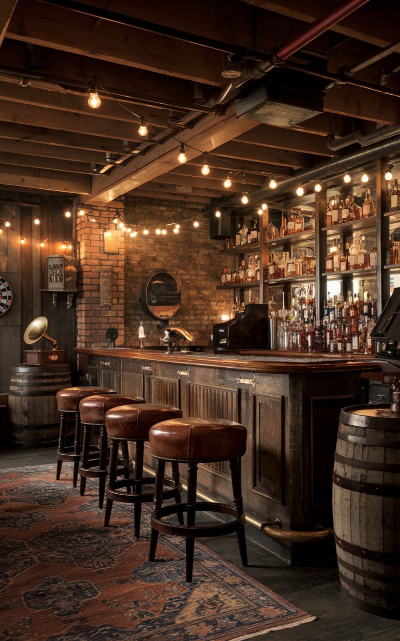 38. Dimly Lit Vintage Basement Bar