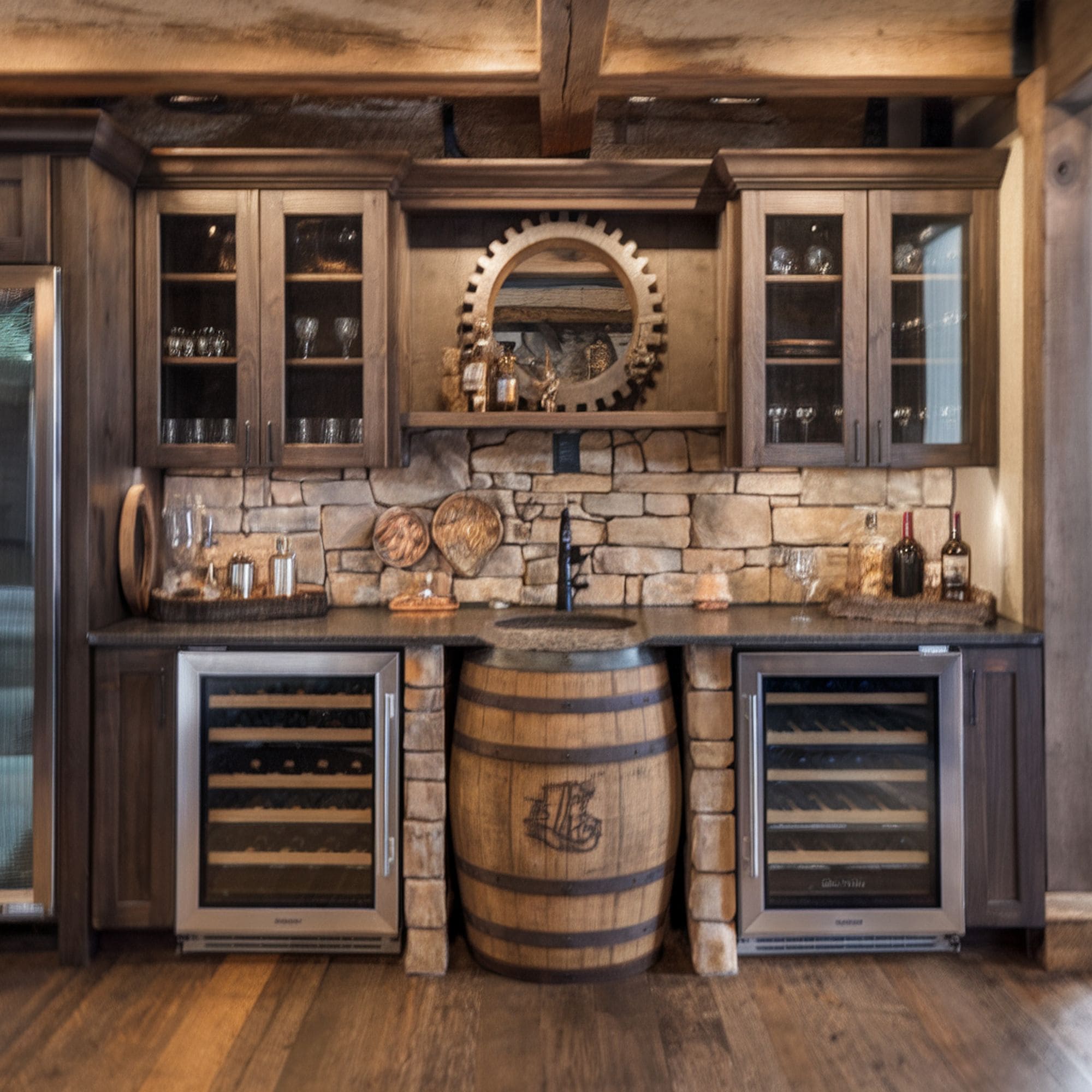 27. Old World Inspired Basement Bar