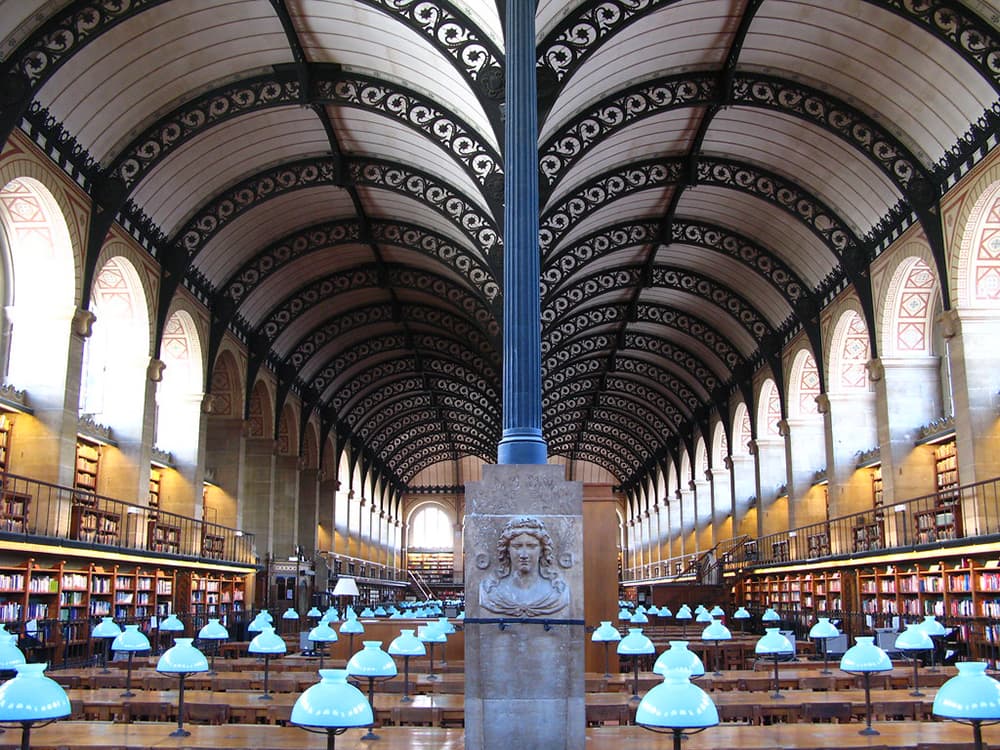 The library building feels like a palace from the Renaissance era. It’s decorated with murals and busts at the entrance while the reading room occupies a huge space. Bibliotheque Sainte-Genevieve incorporates the most advanced building technologies available at the time for beaux-arts architecture. One of the most attractive aspects is the use of a cast-iron framework that’s put on display instead of hidden away. It creates a dramatic visual effect together with the barrel-vaulted ceiling.