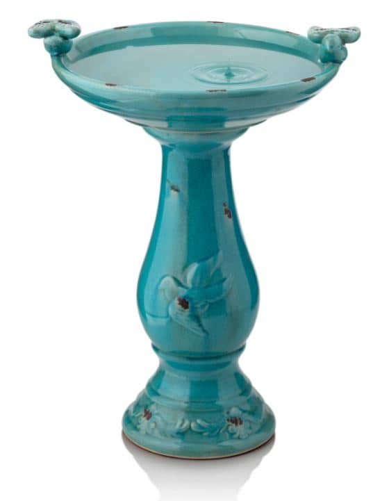 Feathered friends will definitely make an appearance once you install this beautiful bird bath. The turquoise design adds a charismatic ambiance to any area while the shallow bowl permits even smaller birds to enjoy a bath. Assembling this bird bath involves just connecting the two main pieces. The vibrant color looks just as you’d expect from the pictures. Alpine Corporation designed a stylish ceramic bird bath at a fair cost.
