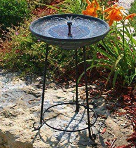 Another well-designed eco-friendly piece is the Smart Solar Somerset bird bath. Water circulates with the help of a pump powered completely by the sun’s rays. This is an ideal piece for outdoor use due to its sturdy wrought iron stand. The Verdigris bowl offers a maximum depth of 2 inches so this means it’s a good bath for smaller birds.