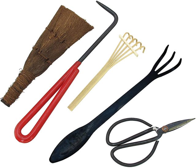 Although you won’t find rakes or little brooms here, this set has all it takes for efficient bonsai trimming. Make use of the concave cutter for delicate branch removal without hurting the tree. The shears work great for both the roots and the top of the plant. These tools are built from high-quality carbon steel using hand-forging techniques. Assuming you take good care of them, it’s safe to say they can last for a lifetime.