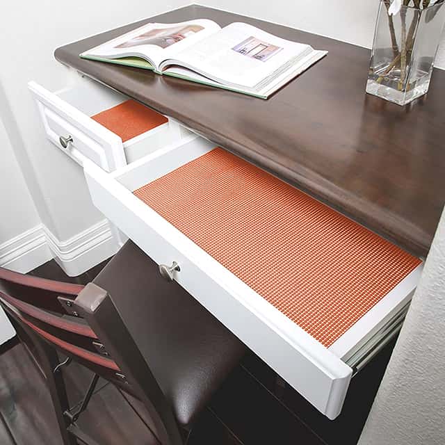 You can purchase this cabinet liner in fun shades of pink, blue, green, or red. There are also decorative versions with eye-catching swirl, dots, quatrefoil, chevron, and diamond patterns to suit various tastes. The drawer liner arrives in multiple size options for maximum flexibility. Don’t worry about getting a larger size than needed because any excess material can be quickly trimmed off. Thanks to the open-weave construction, this shelf liner provides an ideal blend of durability and style.