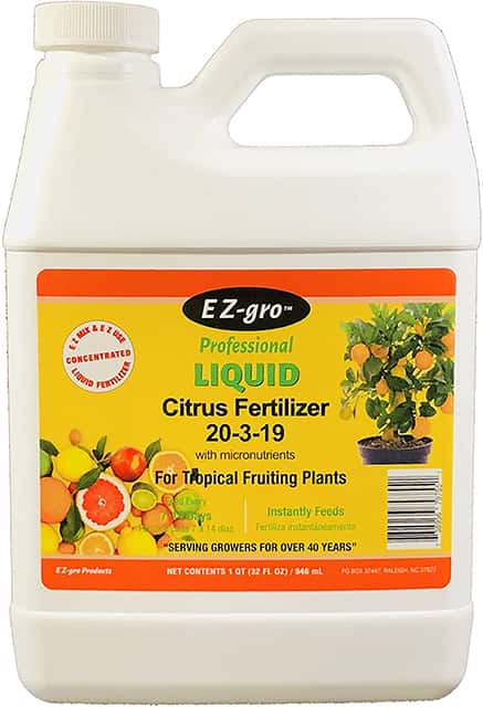 Anyone who needs high-quality liquid citrus fertilizer will probably obtain great results by using this professional product from EZ-gro. This fertilizer makes use of a concentrated solution based on an enhanced micronutrient selection to promote the growth of your citrus trees or bring back to life those plants that are severely affected by poor soil conditions. It works on all tropical fruiting plants but it’s best to use it on citrus trees as it’s designed with them in mind.