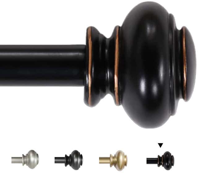 Decopolitan is one of the leading brands when it comes to curtain rods. Check out this elegant end cap model with a toasted copper finish. It’s an adjustable rod that offers size options ranging from 36 to 72 inches. There are other versions as well if you have different needs. The curtain rod is built using durable steel so it can handle heavy fabrics without issues.