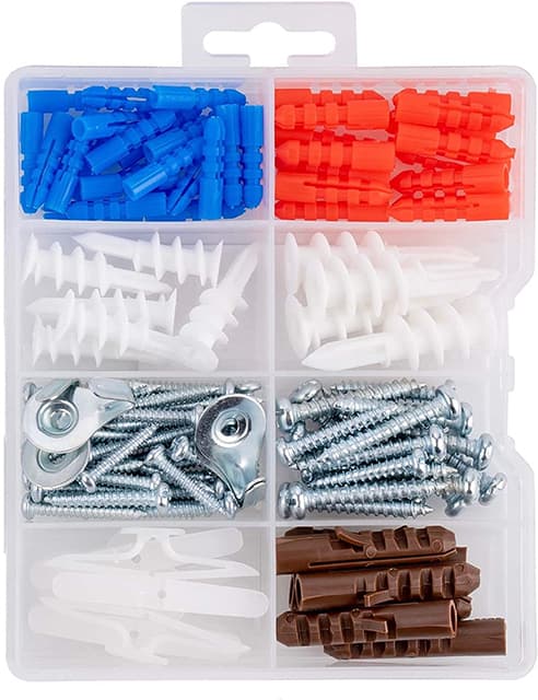 There are four different types of screws and a total of six anchor types supplied in the package. All the pieces are supplied in a convenient storage case with a clear design to help you find the best drywall anchor for any little project around the house. Whether you plan on installing a set of hooks, kitchen tools, or art frames in the drywall, these anchors can safely accomplish the job.