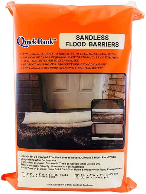 Storing and carrying this flood barrier into place should be simple to handle by most homeowners. Contact with water is all that’s needed for the self-inflation mechanism to work. The only problem is to ensure that you can cover the area that’s at risk of flooding. One barrier included here measures 9 feet which should be enough for most basic applications. You can leave it for extended periods of time to absorb water as it’s fully non-toxic and reliable.