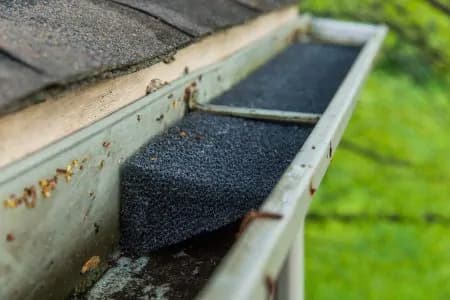 The foam-based cover is another type of gutter guard that’s a breeze to install without professional assistance. It relies on a sponge material that only lets water pass through. Foam inserts are quite popular for their affordable price tags and relatively solid performance. They can prevent clogs from large debris but they’re not really recommended for long-term gutter protection. One great aspect worth mentioning is that foam gutter guards aren’t visible from the street or walkway so they work better for homeowners looking for a more discrete solution to protect the gutters.