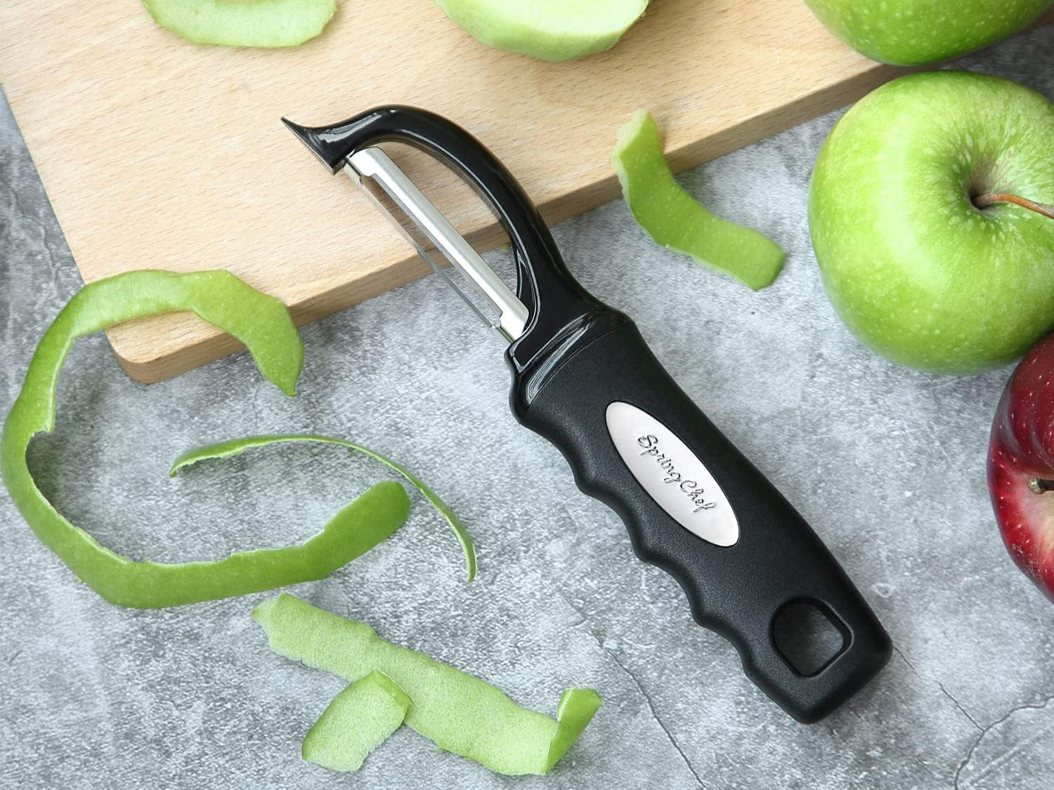 Forget the frustration of dull blades and stubborn peels. This innovative vegetable peeler boasts dual stainless steel blades that effortlessly glide across produce, removing skin with precision and minimal waste. Its smooth glide technology prevents clogging, and the built-in blemish remover tackles imperfections with ease. The ergonomic design, featuring a soft grip handle, ensures comfortable use for everyone, including those with arthritis. Dishwasher safe for quick and easy cleanup, this peeler is a must-have for any kitchen.
